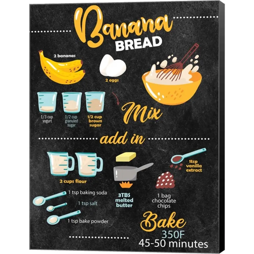 Bannana Bread by Kimberly Allen is a high quality piece of canvas artwork. The finished size of this piece is 12" X 16", and it has a depth 1.5" with black painted sides. There is a UV protective coating over the entire image, and it is ready to hang on your wall with a Standard Drywall Screw (not included). 100% Satisfaction Guaranteed.