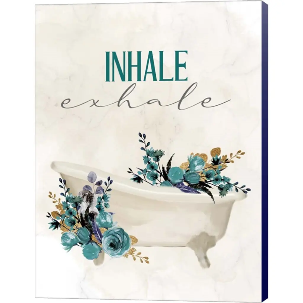 Inhale Exhale Tub by Kimberly Allen is a high quality piece of canvas artwork. The finished size of this piece is 12" X 16", and it has a depth 1.5" with navyblue painted sides. There is a UV protective coating over the entire image, and it is ready to hang on your wall with Standard Drywall Screw (not included). 100% Satisfaction Guaranteed.