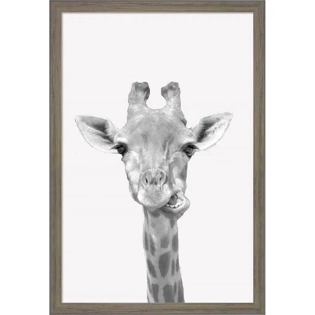 Quirky Giraffes 2 by Kimberly Allen is a high quality piece of framed artwork. The finished size of this piece is 13" X 19". It has a Distressed Grey Knotty Wood frame and is finished with high quality Acrylic Plexiglass. 100% Satisfaction Guaranteed.