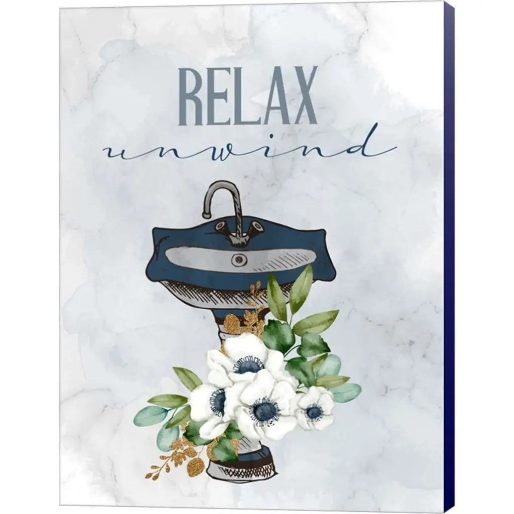 Relax Unwind Sink by Kimberly Allen is a high quality piece of canvas artwork. The finished size of this piece is 12" X 16", and it has a depth 1.5" with navyblue painted sides. There is a UV protective coating over the entire image, and it is ready to hang on your wall with Standard Drywall Screw (not included). 100% Satisfaction Guaranteed.