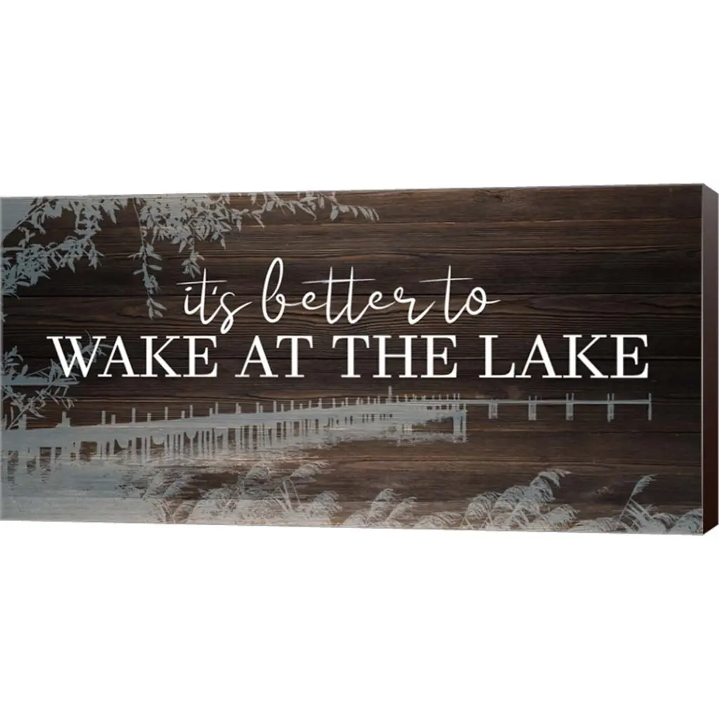 Wake at the Lake by Kimberly Allen is a high quality piece of canvas artwork. The finished size of this piece is 20" X 10", and it has a depth 1.5" with espresso painted sides. There is a UV protective coating over the entire image, and it is ready to hang on your wall with a Standard Drywall Screw (not included). 100% Satisfaction Guaranteed.