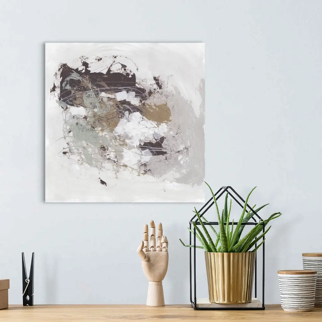 Contemporary abstract painting using earth tones and splash style application.