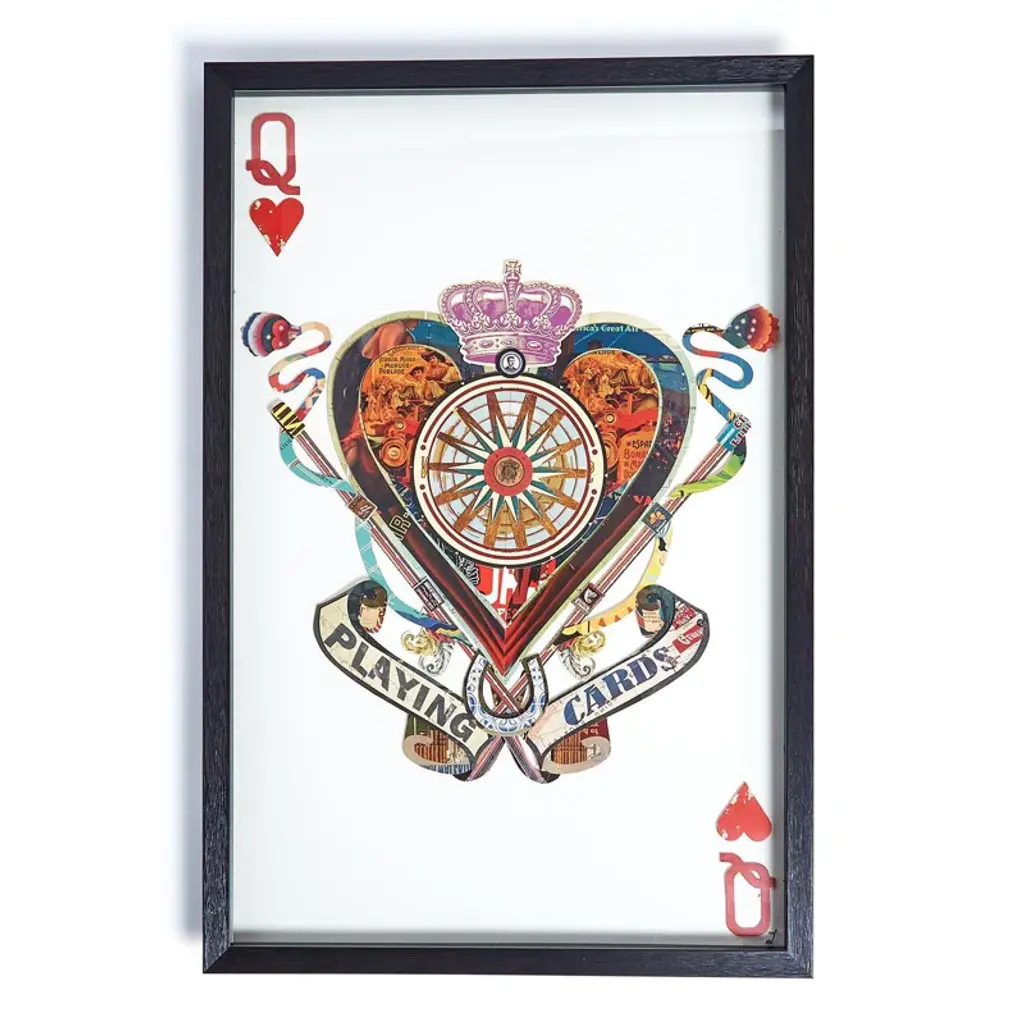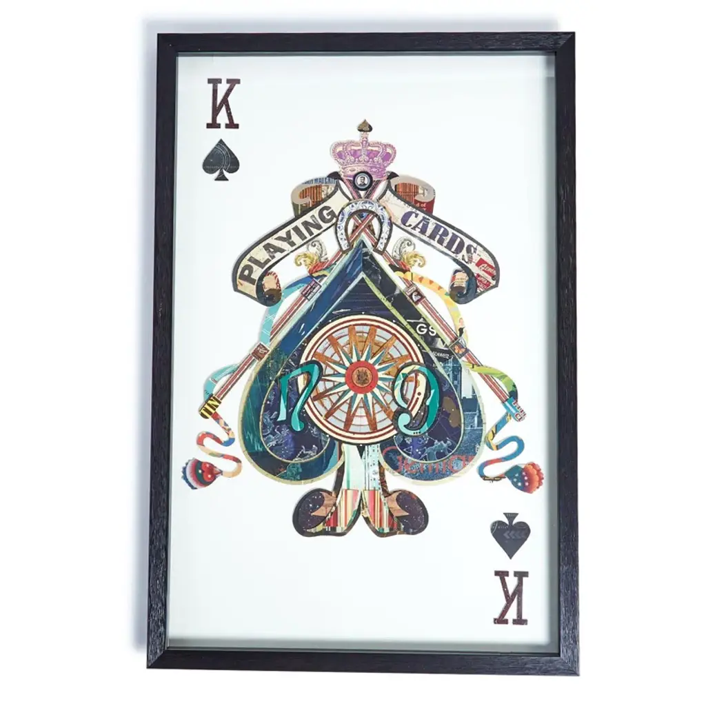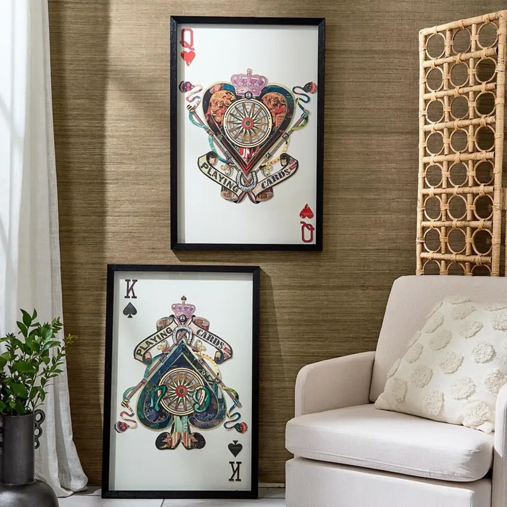 King And Queen Set Of 2 Playing Card Paper Collage Wall Art