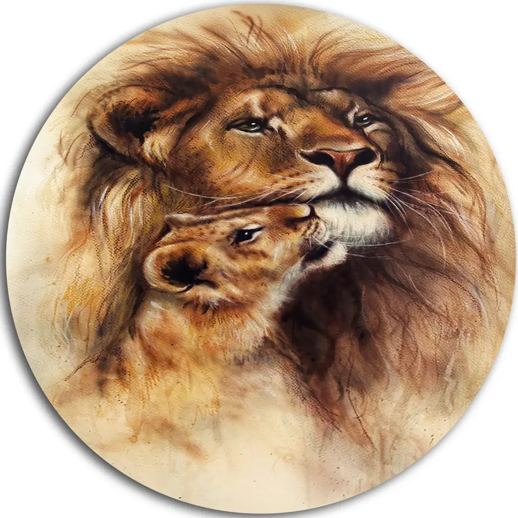 Bring Contemporary Abstraction to your home with this large Circle Metal wall art. This King Lion Aslan Metal Artwork makes it the focal point of any room or office. - White Gloss Coating ensures colors are extra vibrant with light reflection.- Aluminum grade Sheet Metal with 1 inch mounting frame on the back giving the illusion that the artwork is floating on the wall..- Mounting Brackets are included along with instructions.- High Quality Digital images are created directly into a glossy aluminum panel producing a stunning and captivating print into the glossy finish of the metal.- Water, Fire and Scratch resistant HD Aluminum panels.- Looks better than any photo paper and guaranteed to last at least 20 years- Easy to clean with a microfiber cloth. Colors are far superior to regular Canvas Art. - Easy to Hang