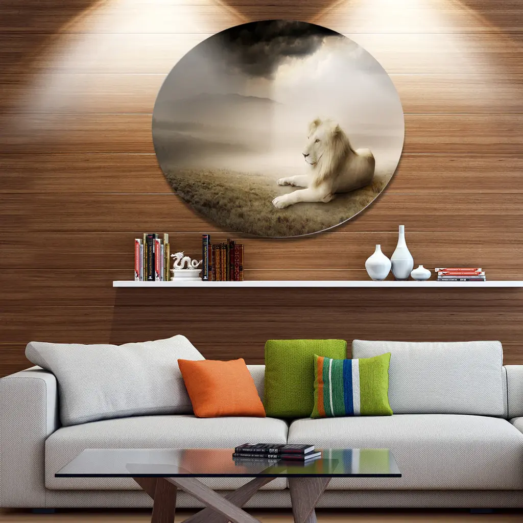 King Of Animals At Sunset, Animal Round Metal Wall Art, 11"