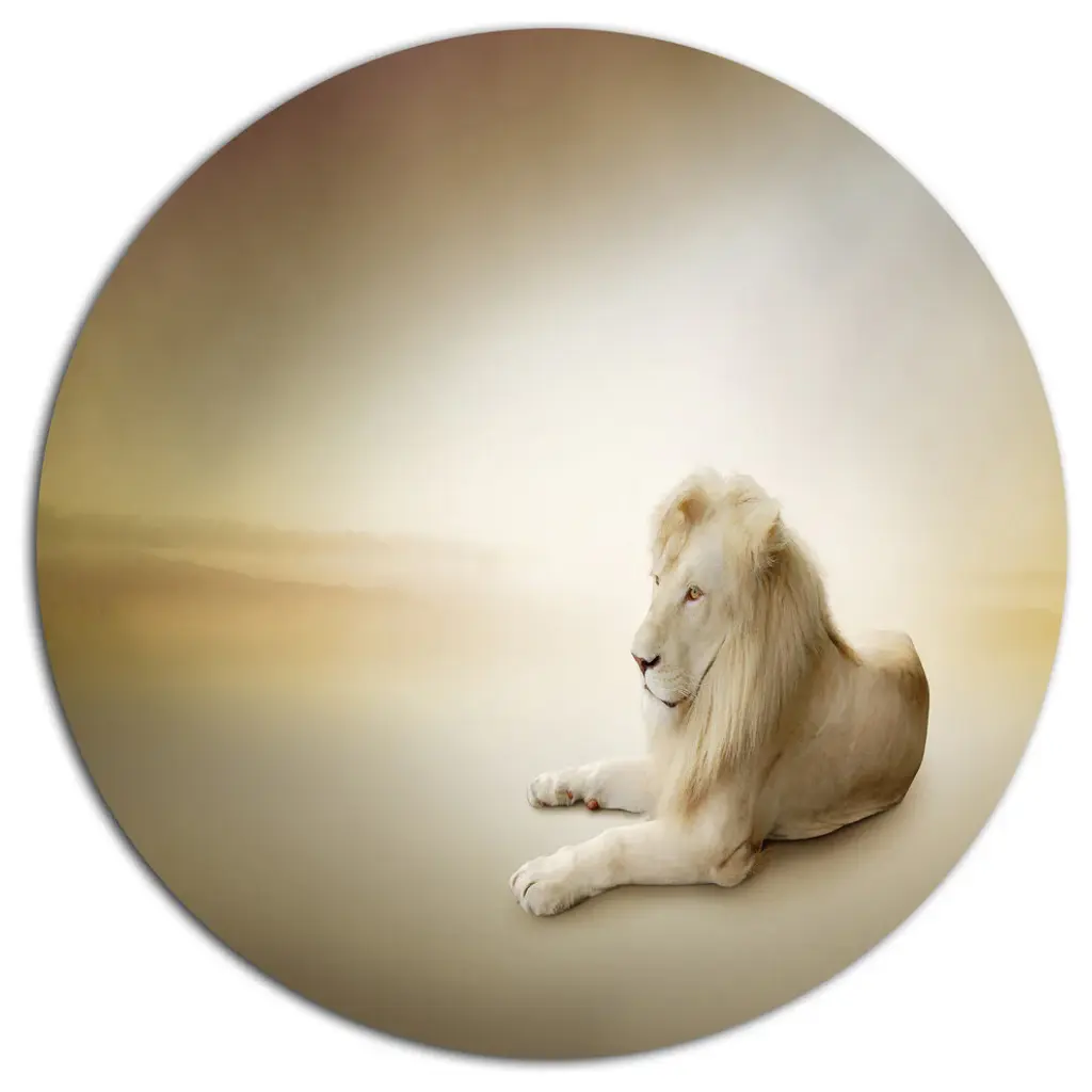 Bring Contemporary Abstraction to your home with this large Circle Metal wall art. This King of Animals At Sunset Metal Artwork makes it the focal point of any room or office. - White Gloss Coating ensures colors are extra vibrant with light reflection.- Aluminum grade Sheet Metal with 1 inch mounting frame on the back giving the illusion that the artwork is floating on the wall..- Mounting Brackets are included along with instructions.- High Quality Digital images are created directly into a glossy aluminum panel producing a stunning and captivating print into the glossy finish of the metal.- Water, Fire and Scratch resistant HD Aluminum panels.- Looks better than any photo paper and guaranteed to last at least 20 years- Easy to clean with a microfiber cloth. Colors are far superior to regular Canvas Art. - Easy to Hang