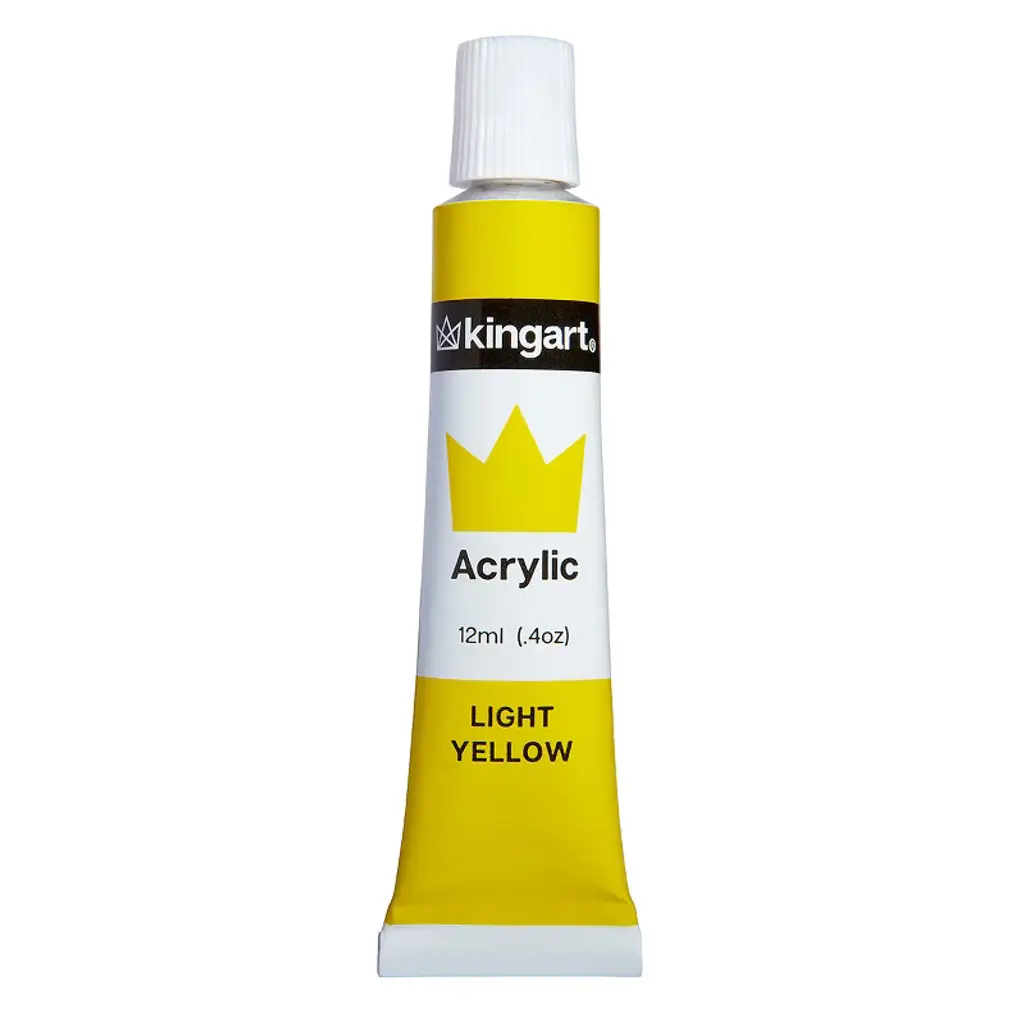 KINGART® Studio Acrylic Paint, 12ml (.4oz), Set of 12 Colors KINGART® studio level acrylic paint consists of a total of 12 vibrant colorsEach tube is labeled with color name/swatchEach tube is filled with 12 ml (0.4 oz) of acrylic paintKINGART® Studio acrylic paint is versatile & easy to lay down.The color is creamy and vividOur acrylic paints blend, layer and mix well to produce an array of unlimited shade for any projectCreate wall art, portrait paintings, abstracts, landscapes, scenery or any of your desired artistic creationsGreat for artists, teens, beginners & students for wide range of surfaces, such as canvas, paper, ceramic, wood, fabric, clay, walls, nails, crafts and moreKINGART® Studio Acrylics are durable & dry quickly. The paint stays on surface extremely well and is durable and long lasting. It’s permanent, waterproof and fade-proofOur studio level acrylics are made with quality pigment. The color has rich pigment with high intensity that provides excellent coverage and maintain smoothness while paintingFor consistent texture & longevity, cap each tube tightly after every applicationFun, safe & easy to use our acrylic paints is non-toxic, water-based, fast-drying, acid-free & conform to ASTM D4236 KINGART® studio level artist acrylic paints will bring your artwork to life. A full selection of 12 unique eye-catching vibrant water-based acrylic colors that allow you to create stunning vivid masterpieces. They're ideal for use by professional artists, as well as the young aspiring artist The KINGART® Heritage Our family has been exceeding the needs of the most demanding artists and enthusiasts for three generations. We delight in challenging the status quo and putting our experience to work for you.
