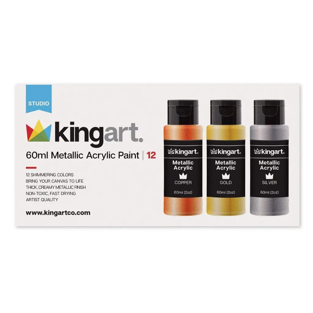 Kingart Acrylic Paint Set, 60ml, 12 Metallic Colors