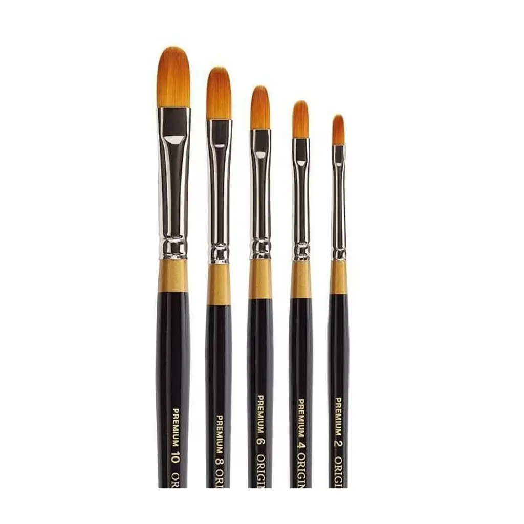 KINGART® Original Gold® 9800 Dagger Series, Premium Golden Taklon Multimedia Artist Brushes, Painting Tools for Oil, Acrylic, Watercolor and Gouache, Set of 4 Use the Original Gold® 9800 Dagger brush to create different width lines, scrolls, waves, foliage, and to paint along edges. The premium quality, Golden Taklon brushes are staggered in length, cascading down to a tapered point. The dagger striper is a unique brush with a fine tip and gradually curving, angled edge. The ferule is flat like a normal flat brush, but on one side the hair is much longer than on the other side. The name is derived from a sword-like appearance and it is a very popular brush for pin-striping and free hand lettering. Also used for faux marble to create subtle variations in the veining. This collection includes: Original Gold® 9800 Dagger – Size 1/8Original Gold® 9800 Dagger – Size 1/4Original Gold® 9800 Dagger – Size 3/8Original Gold® 9800 Dagger – Size 1/2 About Original Gold® ® developed the best quality paintbrush for oil, acrylic, watercolor, and gouache painting. These brushes lend themselves beautifully to fine detailing, blocking, shading, lettering, applying washes and more. Each brush style is designed with its own special blend of luxury synthetic filaments for greater versatility, enhanced color-holding capacity, and precise color placement.