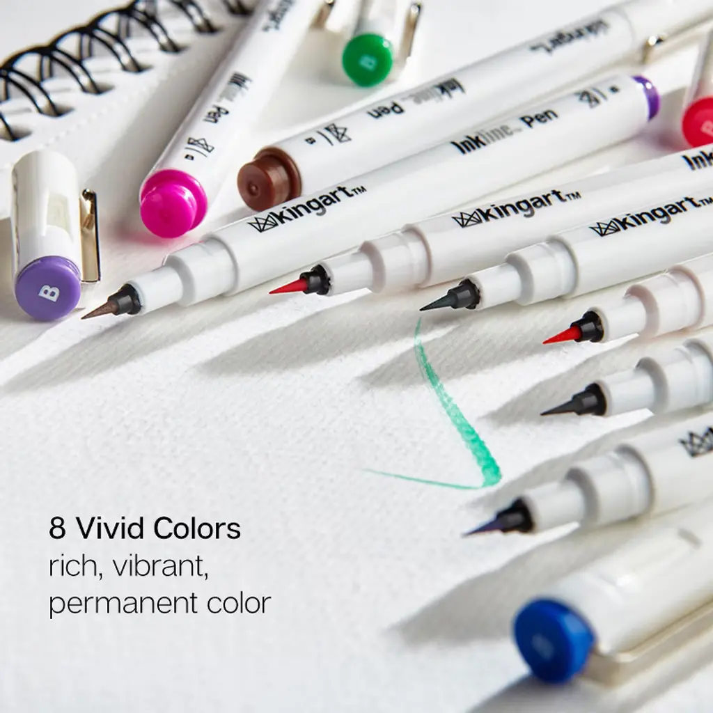 Kingart Pro Inkline Brush Tip Pens, 8 Colors