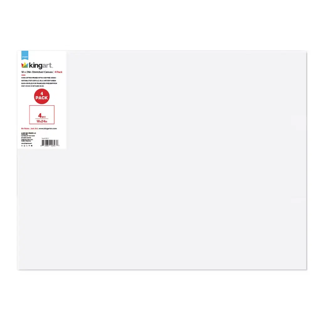 Kingart Stretched Canvas 18" X 24", 4-pack