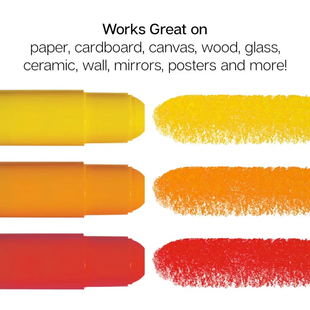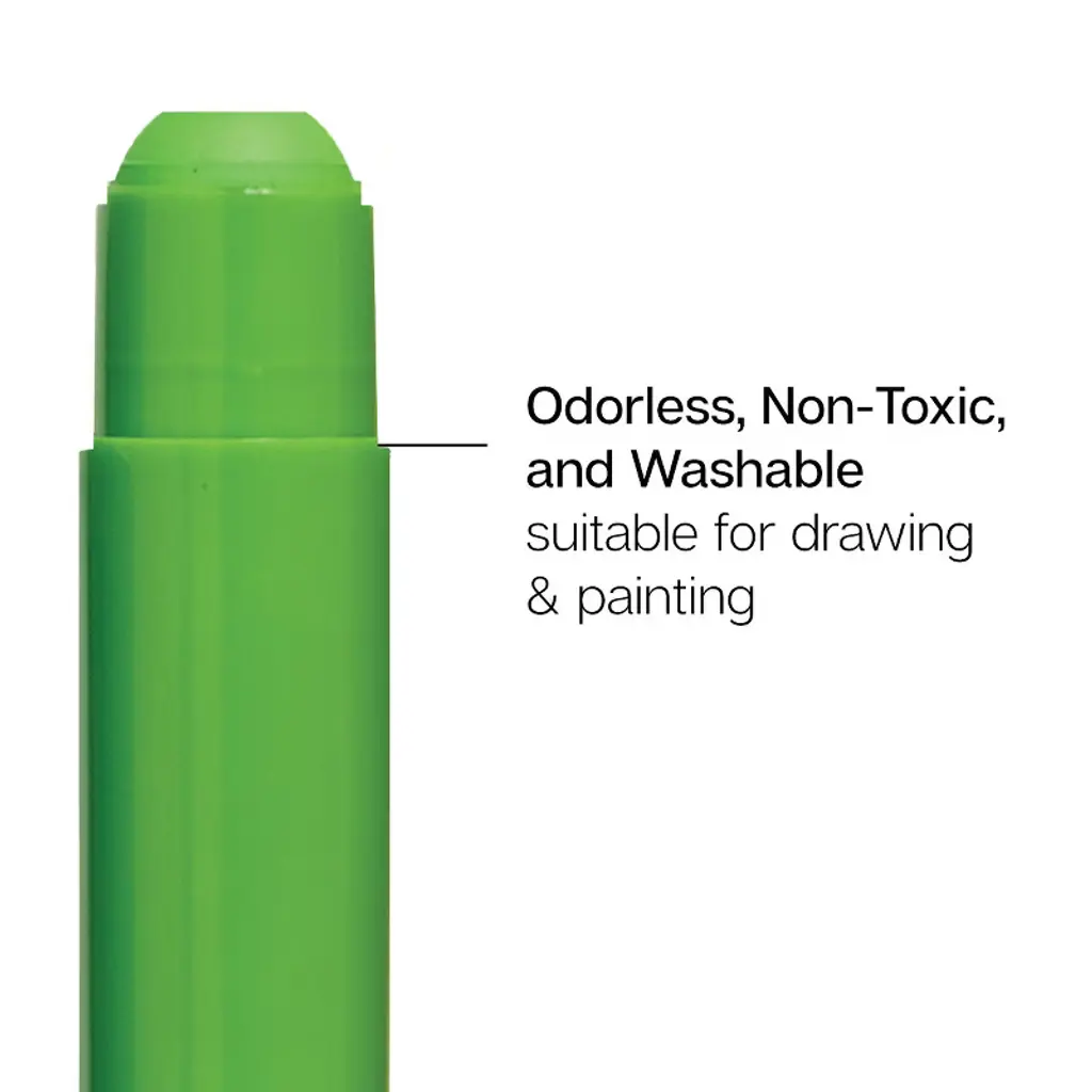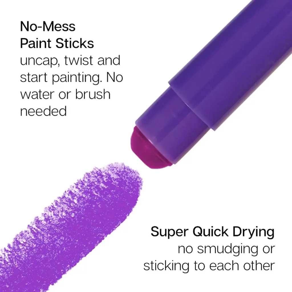 KINGART® Tempera Paint Sticks, 24 Vibrant Colors Solid Tempera Paint, Super Quick Drying, Works Great on Paper Wood Glass Ceramic Canvas 24 no-mess paint sticks—just open, twist, paint and/or drawVibrant lightfast colors: 12 Classic, 6 Metallic, and 6 NeonSuper Quick Drying 90 secondsUse with brush to paintDraw & DoodleGreat on paper, cardboard, posterboard, even woodOdorless, non-toxic, and washableNON-Toxic & conforms to ASTM D-4236 You’ll be amazed and delighted by what you can do with this set of 24 tempera paint sticks. Whenever the creative urge strikes, you’re ready to go—no need for water, brushes or protective layers, no worries about spills or messy cleanup. Brilliant colors inspire dazzling artwork… posters for school… cardboard creations… wooden toys brought to life with playful colors. Creations dry in no time (no smudging or sticking to each other), and the vibrant colors won’t fade or crack. Designed by artists, each brush is manufactured to exacting standards, so you’re assured of quality and consistency. These 24 STUDIO tempera paint sticks are perfect for aspiring enthusiasts and beginners looking to enjoy new levels of creativity. Effortless Drawing: Uncap, twist and then start painting. No water or brush needed. Each tempera paint stick goes smoothly on most surfaces. Quick Drying & Washable: Dries within 90 seconds. So there will be no smearing. MESS FREE! These paint sticks are WASHABLE and can be cleaned with soap water easily on non-porous surface. Unlimited Uses: Works great on paper, cardboard, canvas, wood, glass, ceramic, wall, mirrors, posters and more. Suitable for drawing & painting, home doodling and school art projects. A perfect gift choice for artists of all ages. The KINGART® Heritage Our family has been exceeding the needs of the most demanding artists and enthusiasts for three generations. We delight in challenging the status quo and putting our experience to work for you.