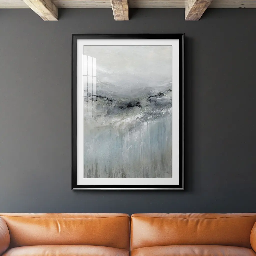 This Kingeslake Landscape paints a serene picture of a hauntingly beautiful silver landscape. Cool greys and blues provide a relaxing element to any space in need of stunning allure.