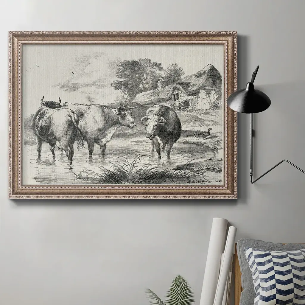 Kip's Garden Views I Premium Framed Canvas- Ready to Hang A Premium Framed Canvas created to last. Framed in distressed wood and available in an array of sizes and colors Featuring a beveled a solid wood stretcher bar, each piece comes ready to hand 3 SIZES AVAILABLE 16''X20'' - Overall Size 18'X27'' - Overall Size 24''x36'' - Overall Size Each piece is made to order. Each piece comes with hanging hardware. Made in the USA Ready to Hang Giclee Paper Print Acrylic Glass Beveled Matt Board