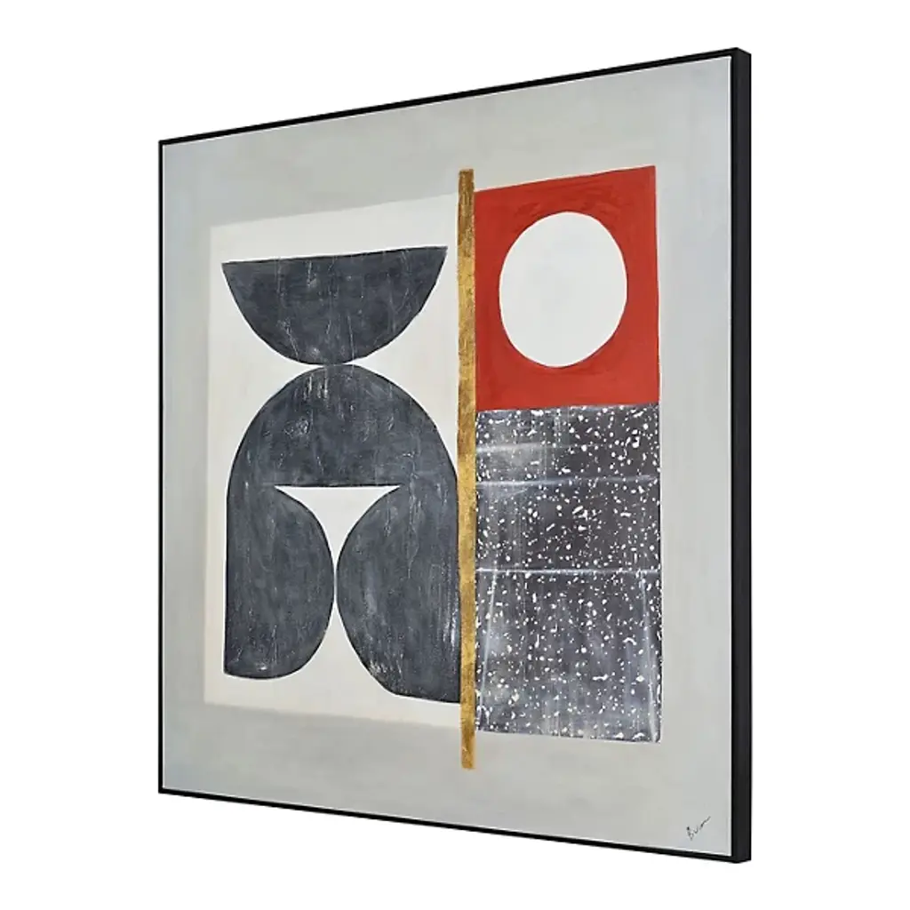 The Kira Canvas Art from Renwil tells tales through textured abstraction. Rich and retro gold leaf and galactic notes layer intrigue across the cotton canvas. Framed in a smooth mid-century modern style, it provides the final artistic touch for interiors. The cosmic gold details of the art help it stand out from the surrounding decor, adding a captivating depth and artistic intricacy.