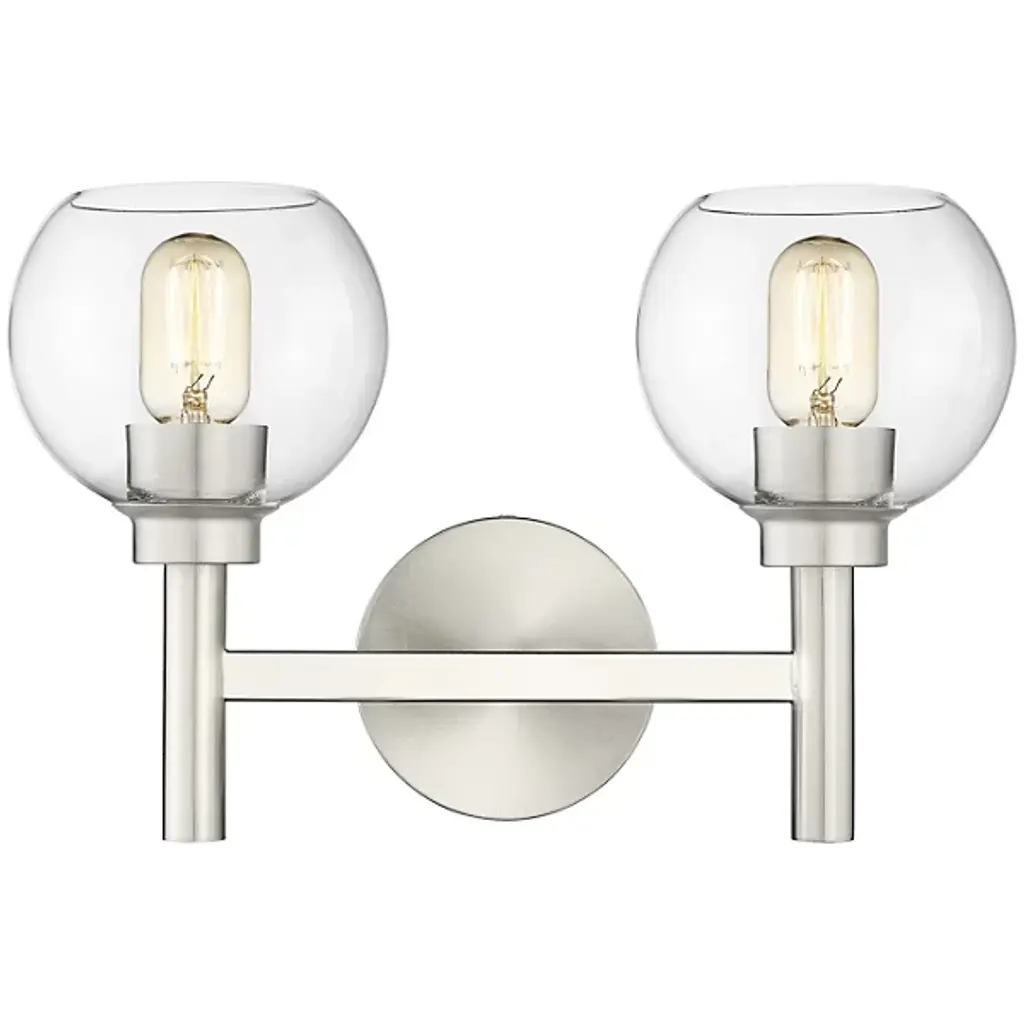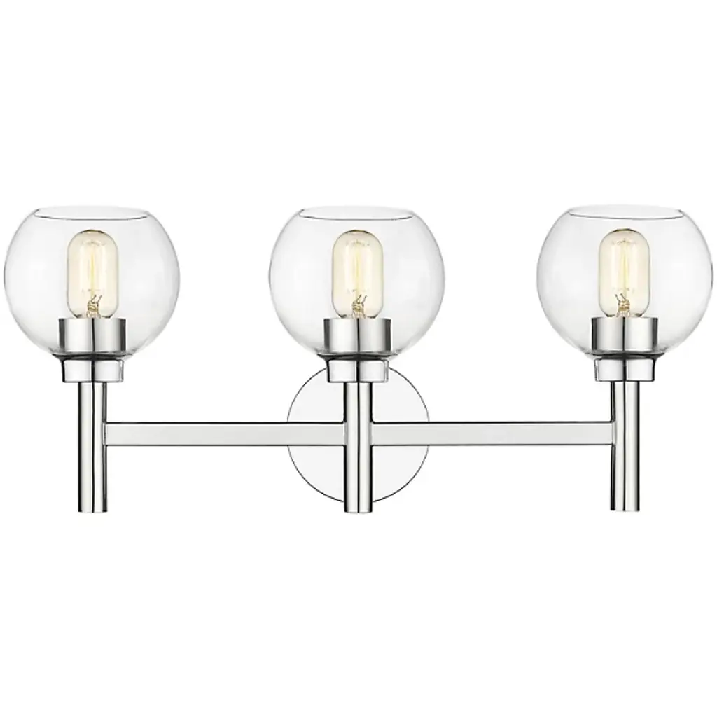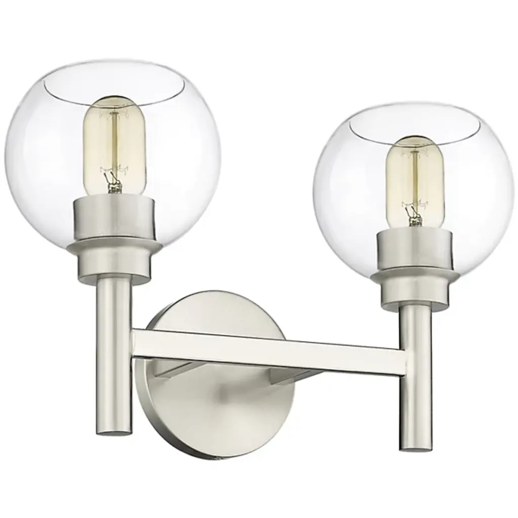 In the realm of contemporary design, the Kira Vanity Light from Alder & Ore stands out with its graceful, circular design elements. Taking inspiration from a classic torch silhouette, it gleams and infuses an entry or bathroom with warmth and a hint of glamour. Two open-edged clear glass globe shades add a touch of precision, and you can mount this fixture with the lights facing either up or down, allowing you to tailor it to your space and preferences.