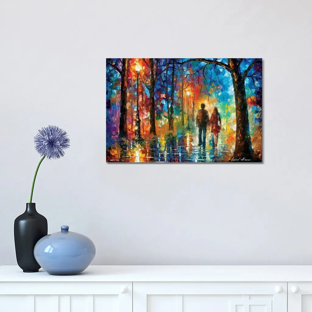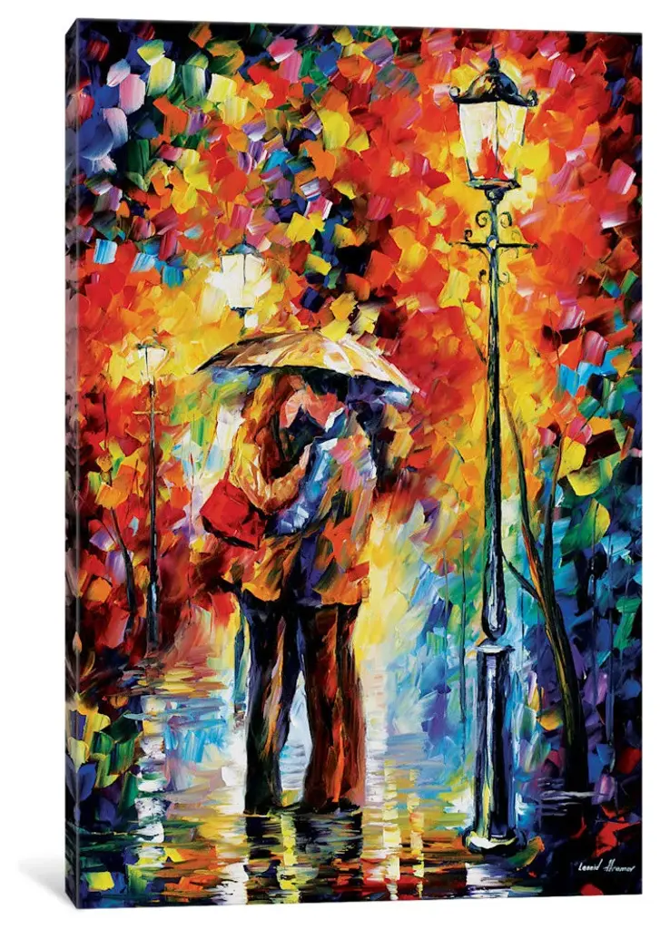 "Kiss Under The Rain" By Leonid Afremov, Canvas Print, 26"x18"