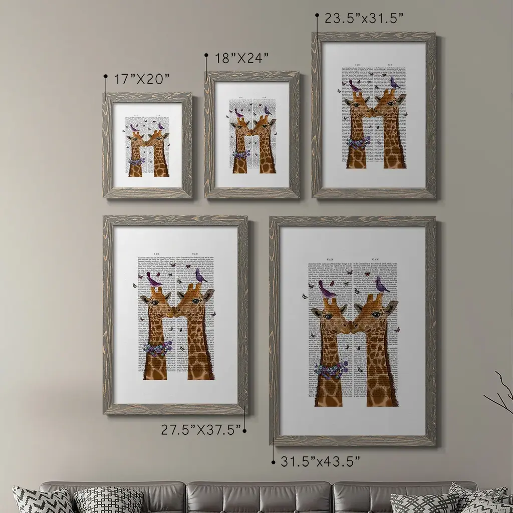 Kissing Giraffes With Birds-Premium Framed Canvas - Ready To Hang - 31.5x43.5 - White