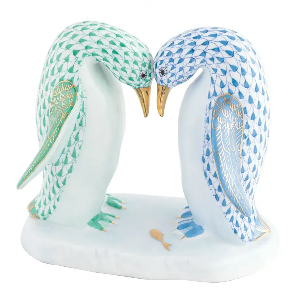 Endearing animals meek and bold, large and small, demure and majestic eagerly await the chance to melt your heart and warm your home. Each is brought to life by the skilled hands of artisans crafting and painting these charming porcelain creatures. The famous fishnet décor adorning many of the animals took form in 1858 when a Herend painter became inspired by a fishscale design he saw on a Chinese porcelain plate and painted a similar pattern onto a rooster figurine to imitate feathers. The rest is history, with the fishnet design now a Herend signature prized worldwide. Now the biggest porcelain manufactory in Europe, Herend was founded in 1826 to produce earthenware in the small Hungarian village for which it was named. At the time, Hungary was flooded with low-cost pottery, but in 1839, Mor Fischer became the Manufactory’s new owner and he decided to focus on producing dinnerware replacement pieces for Europe’s royal families to complement their valuable porcelain patterns from Germany and the Far East. As his client base grew, Fischer commissioned his artists to begin designing dinnerware patterns of their own. Queen Victoria’s 1851 purchase of a large set for Windsor Castle was a milestone, setting the stage for aristocrats throughout Europe to clamor for Herend in their estates. In the 1850s, Herend added meticulously-crafted figurines to its creations. Herend’s trademark fishnet pattern, which is widely recognized and prized as Herend’s signature design, started in 1858 when an artist who was intrigued with a Chinese plate’s fish scale design painted it onto a rooster figurine to imitate feathers.