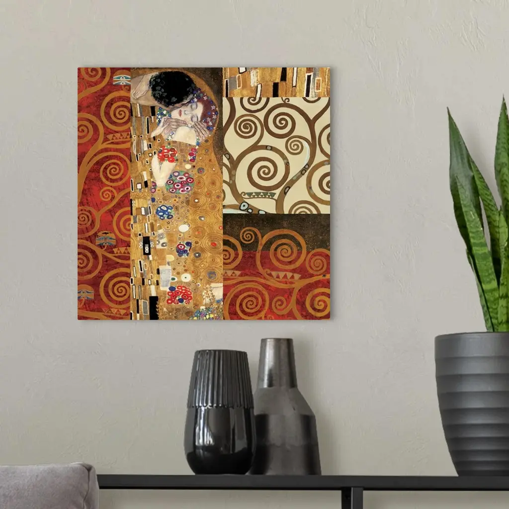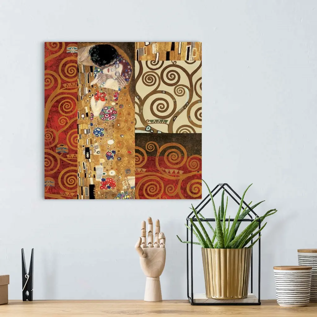 Classic painting at shows a man holding and kiss a woman on the cheek .