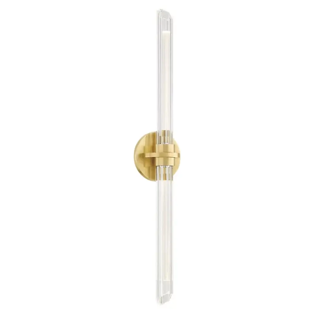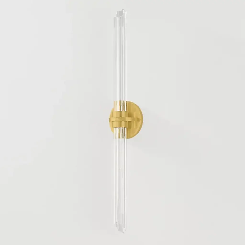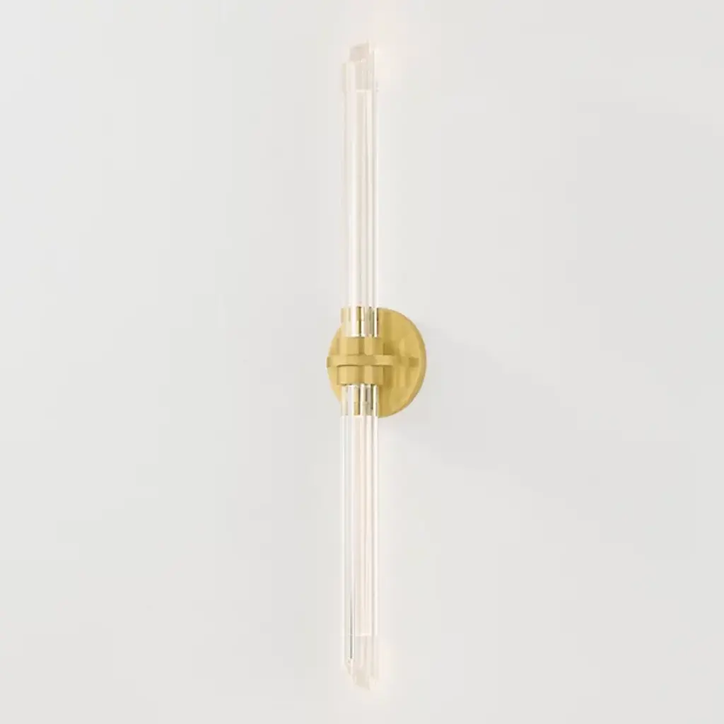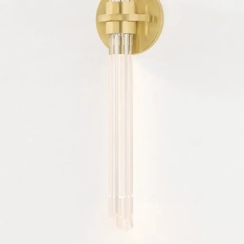 The Knighton LED Vanity Light from Hudson Valley Lighting brings fresh thinking to bathroom illumination. A glass column stands proud of the wall; its faceted surface catches and redirects light in multiple directions. The glass rod appears to slice through its mounting points, creating an illusion of continuous flow. When lit, the Knighton Bath LED Wall Sconce treats light as a material to be shaped, cut, and polished until it achieves perfection.