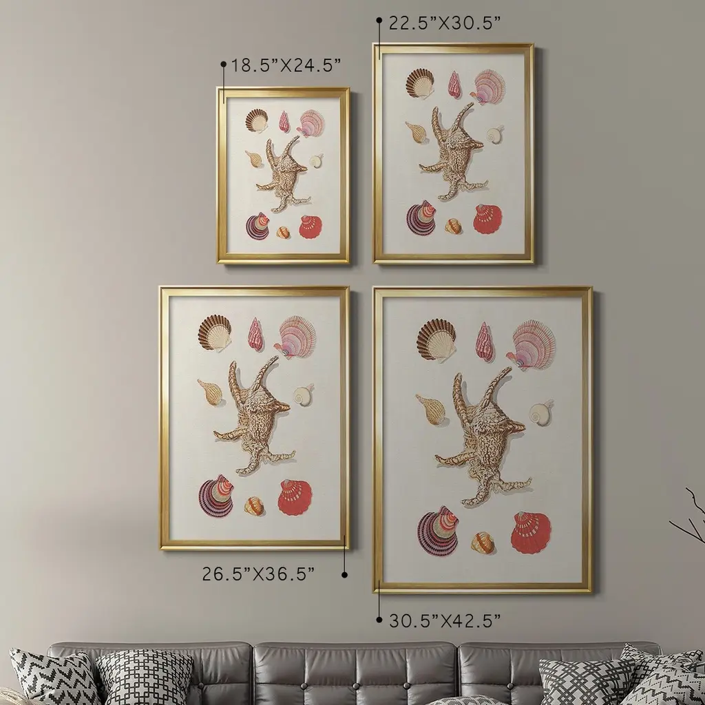 Knorr Shells & Coral II Premium Framed Print - Ready to Hang A Premium Framed Print created to last. Framed in distressed wood and available in an array of sizes and colors Featuring a beveled a solid wood stretcher bar, each piece comes ready to hand 4 SIZES AVAILABLE 30.5''X42.5'' - Overall Size 26.5'X36.5'' - Overall Size 22.5''x30.5'' - Overall Size 18.5''x24.5'' - Overall Size Each piece is made to order. Each piece comes with hanging hardware. Made in the USA Ready to Hang