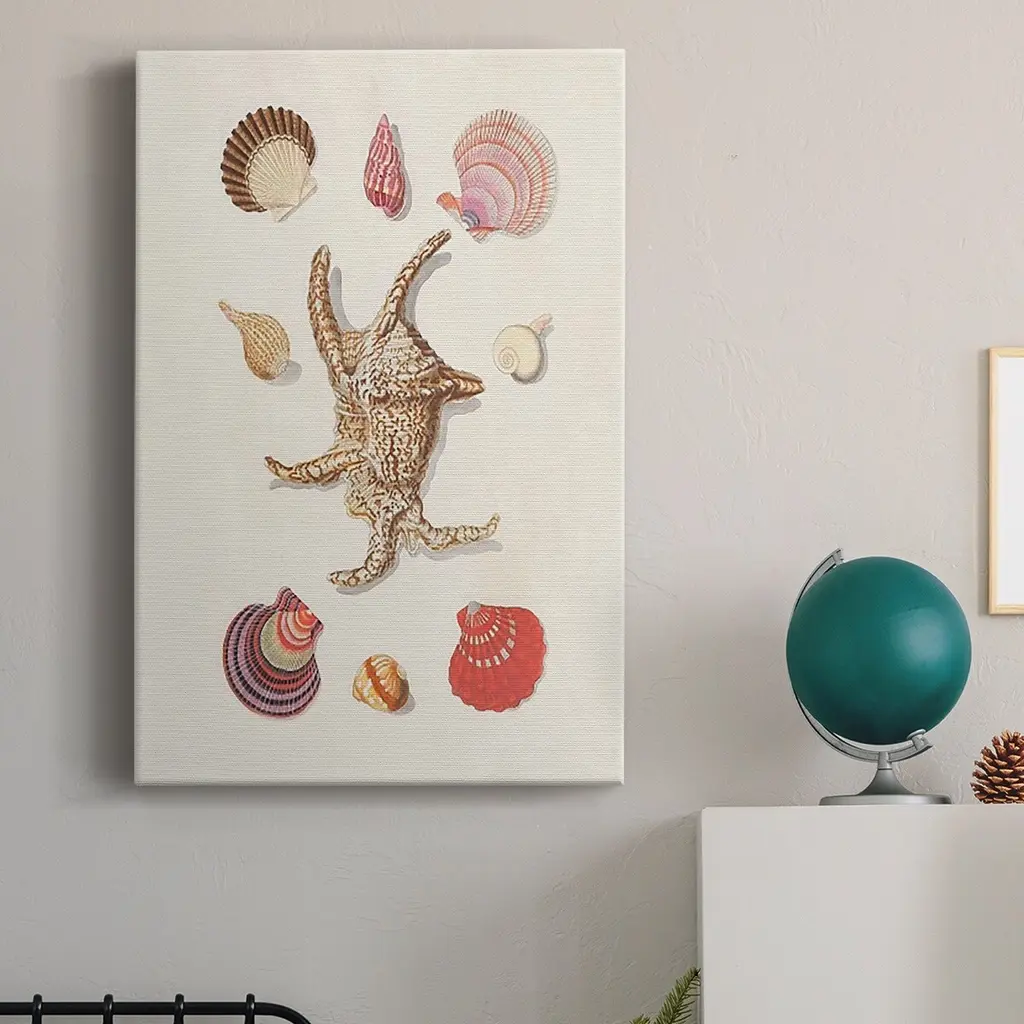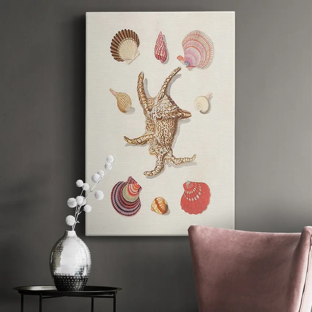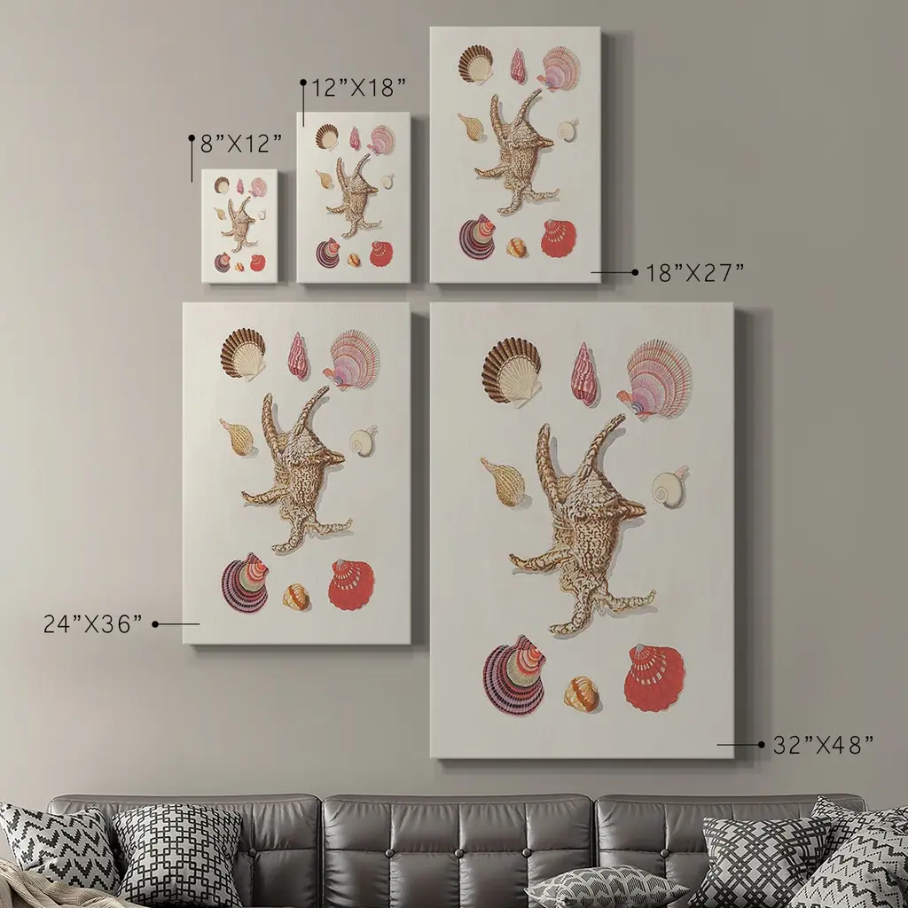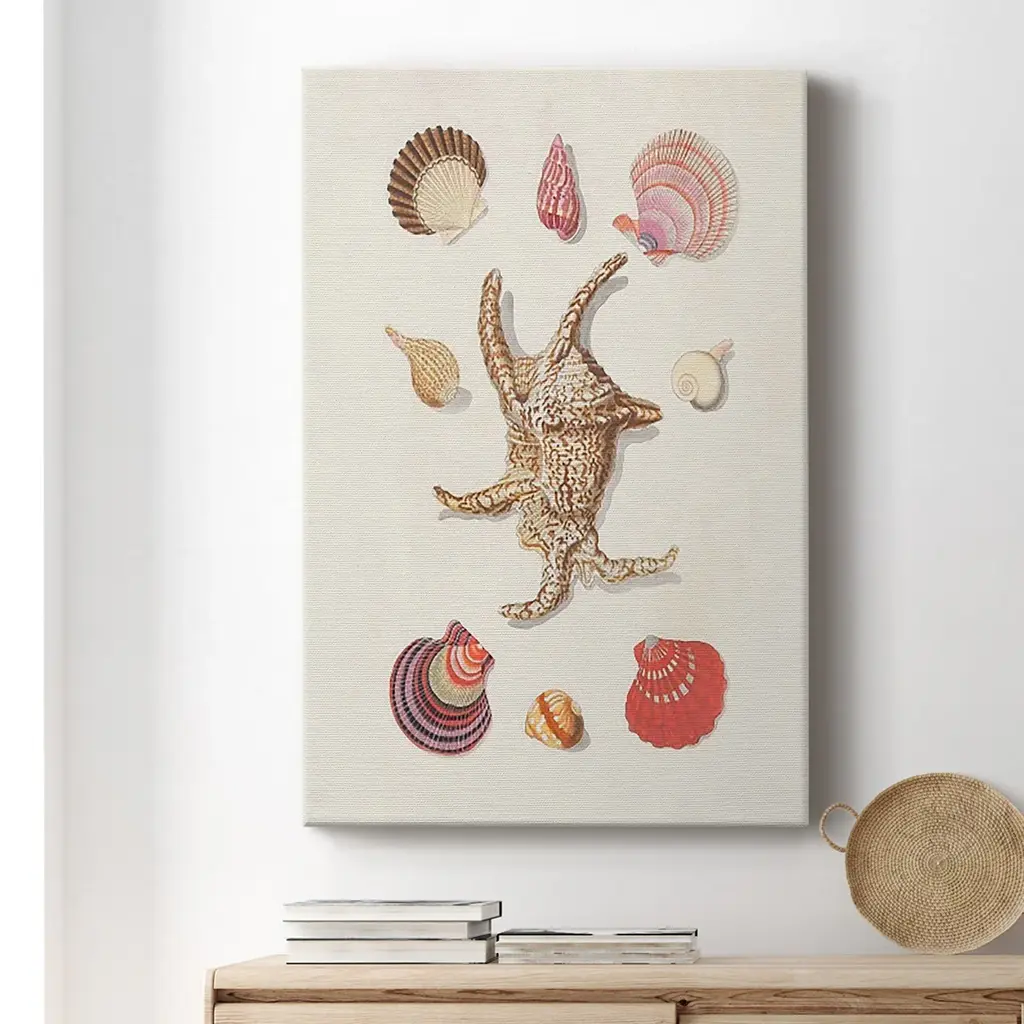 Knorr Shells & Coral II Premium Gallery Wrapped Canvas - Ready to Hang A premium hand stretched gallery wrapped canvas print created to last. Featuring a beveled a solid wood stretcher bar, each piece comes ready to hand 6 SIZES AVAILABLE 8''X12'' - Overall Size 12''X18'' - Overall Size 18''X27'' - Overall Size 24''x36'' - Overall Size 32''x48'' - Overall Size 40''x60'' - Overall Size Each piece is made to order. Built to Last Each piece comes ready to hang Solid wood stretcher Fade and Water resistant Made domestically