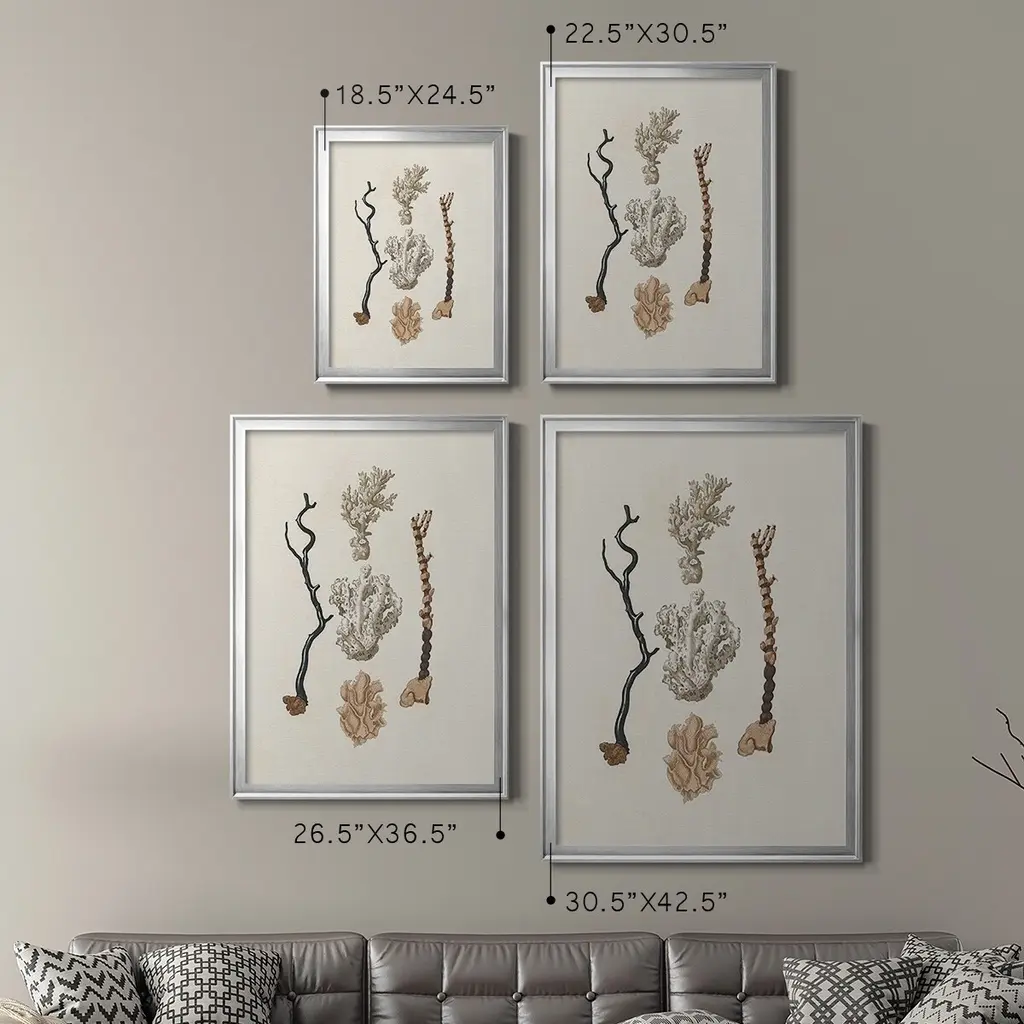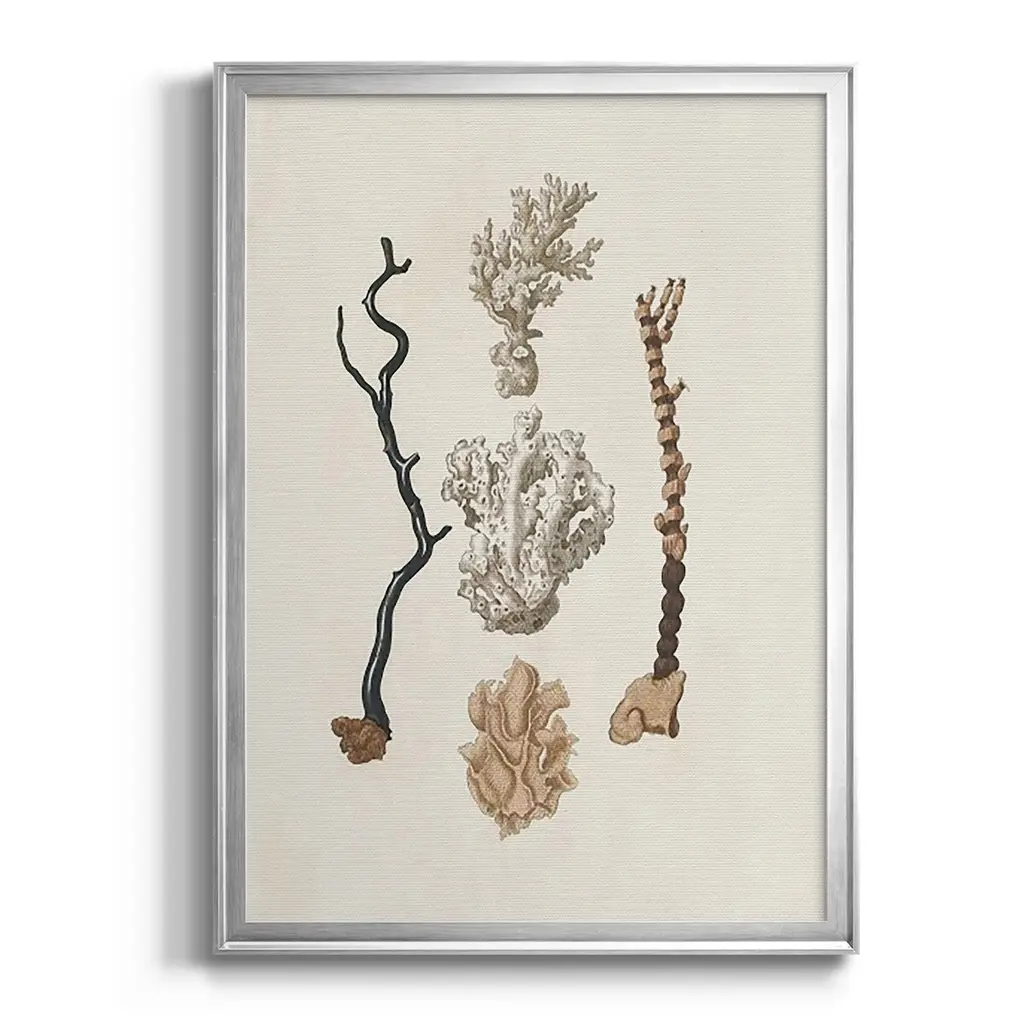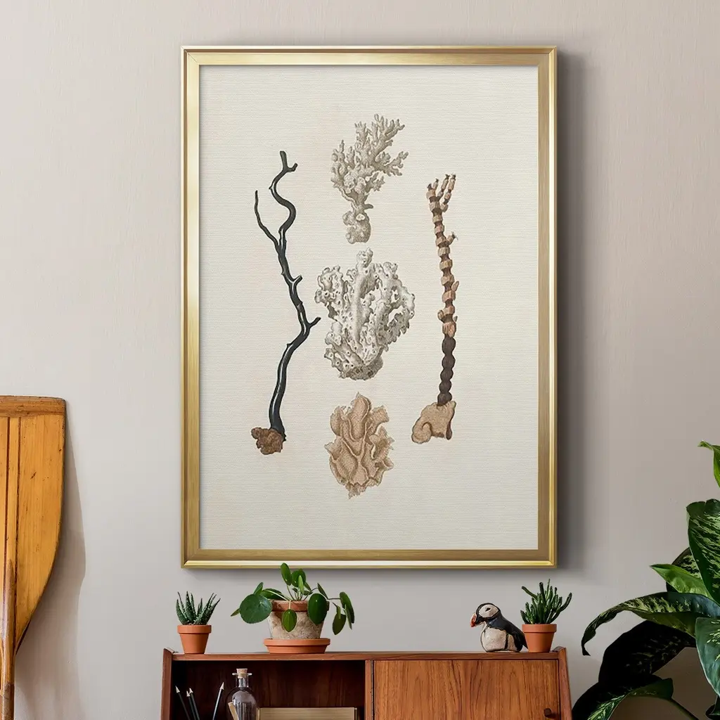 Knorr Shells & Coral V Premium Framed Print - Ready to Hang A Premium Framed Print created to last. Framed in distressed wood and available in an array of sizes and colors Featuring a beveled a solid wood stretcher bar, each piece comes ready to hand 4 SIZES AVAILABLE 30.5''X42.5'' - Overall Size 26.5'X36.5'' - Overall Size 22.5''x30.5'' - Overall Size 18.5''x24.5'' - Overall Size Each piece is made to order. Each piece comes with hanging hardware. Made in the USA Ready to Hang