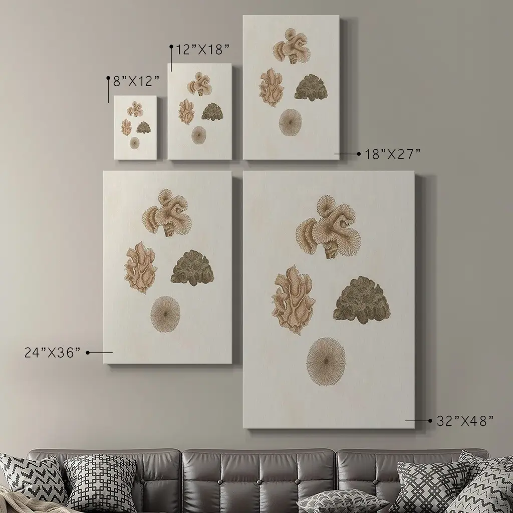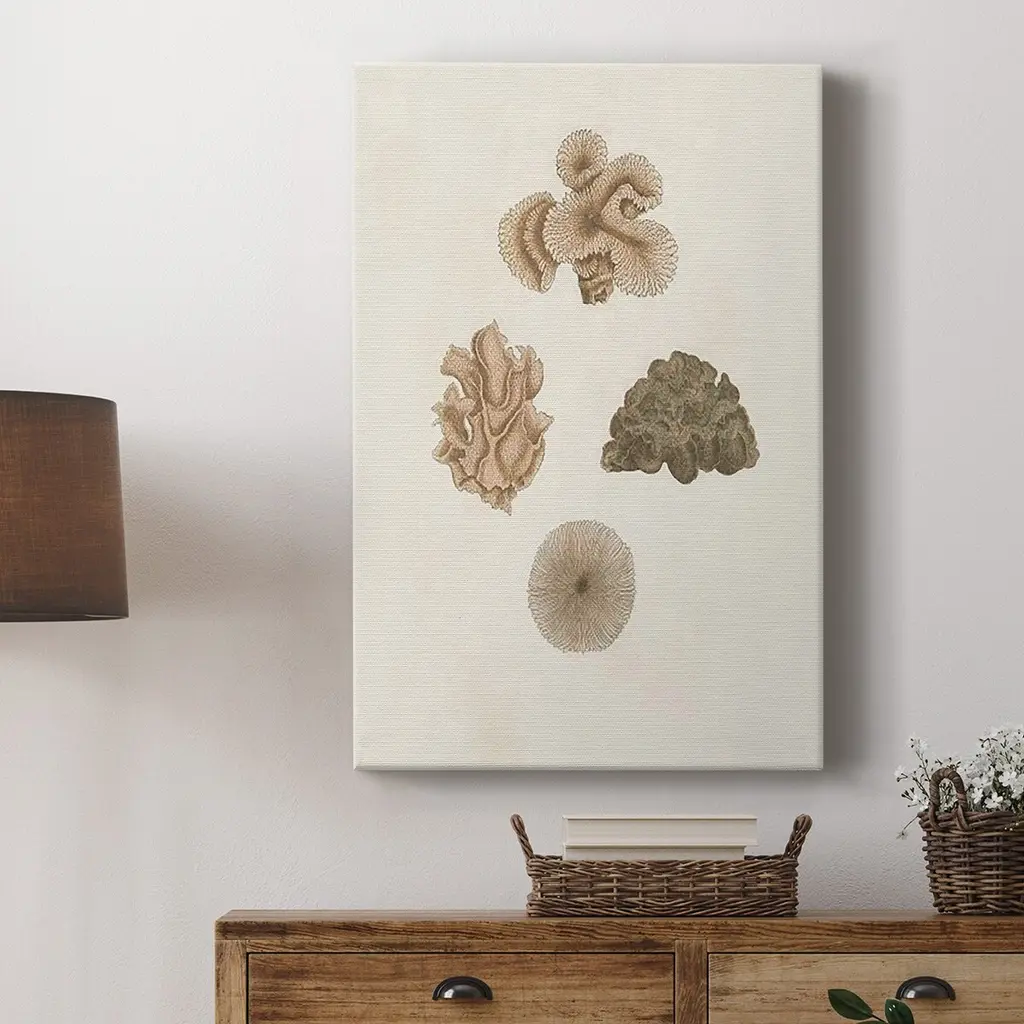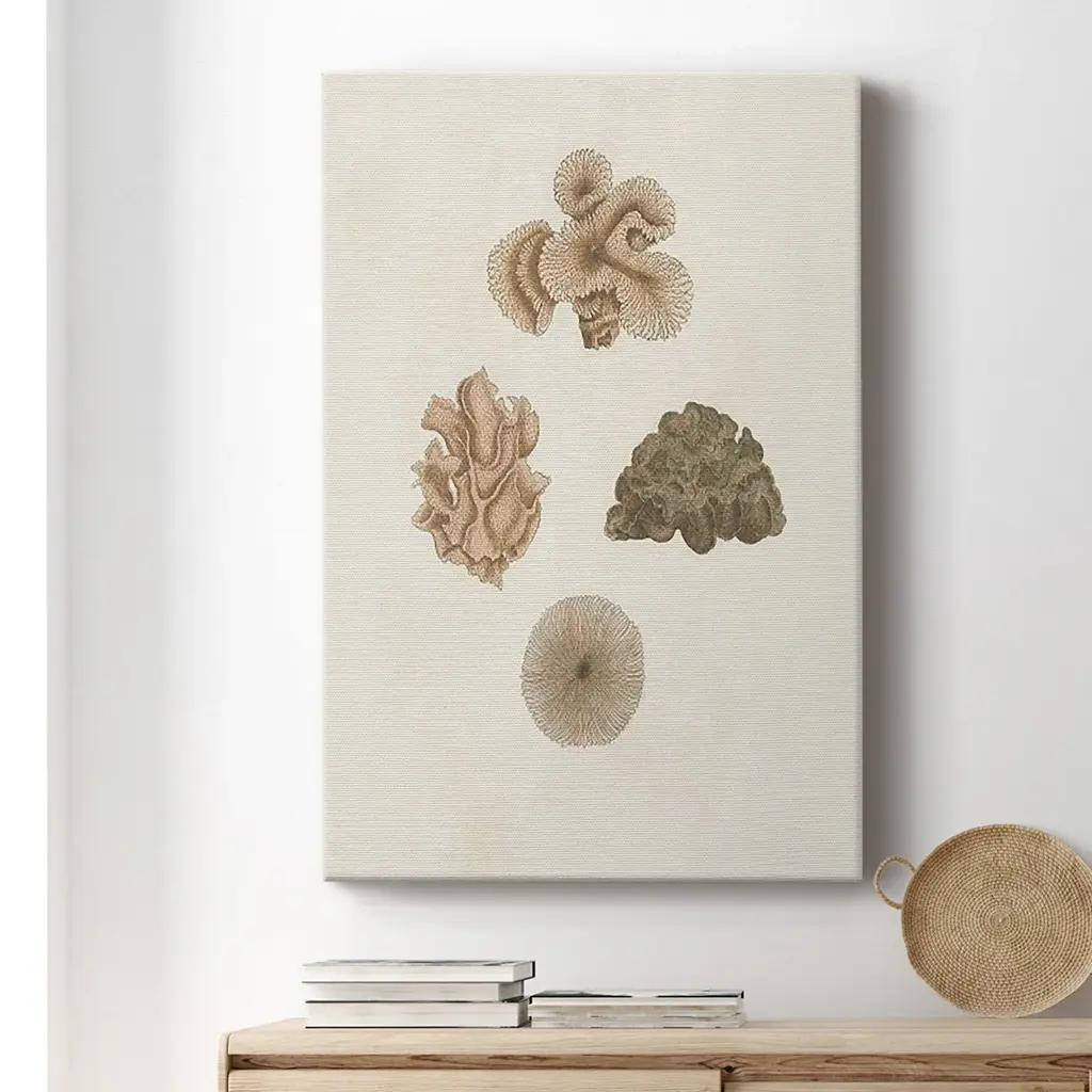 Knorr Shells & Coral VIII Premium Gallery Wrapped Canvas - Ready to Hang A premium hand stretched gallery wrapped canvas print created to last. Featuring a beveled a solid wood stretcher bar, each piece comes ready to hand 6 SIZES AVAILABLE 8''X12'' - Overall Size 12''X18'' - Overall Size 18''X27'' - Overall Size 24''x36'' - Overall Size 32''x48'' - Overall Size 40''x60'' - Overall Size Each piece is made to order. Built to Last Each piece comes ready to hang Solid wood stretcher Fade and Water resistant Made domestically