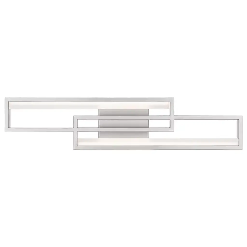 Introduce a bold geometric flair to your bathroom with the Kocha LED Vanity Light from Quoizel. Its versatile integrated LED light source radiates beautifully through an open, rectangular framework, while the CCT switch on the fixture can be adjusted at any time, even after installation, for customizable brightness. As a part of the sought-after Platinum by Quoizel collection, Kocha seamlessly complements vanity spaces with a blend of style and functionality.