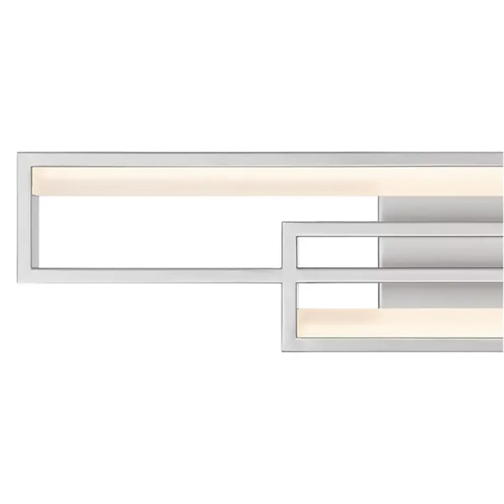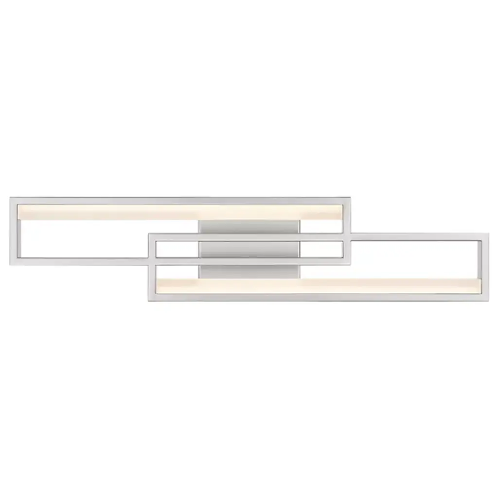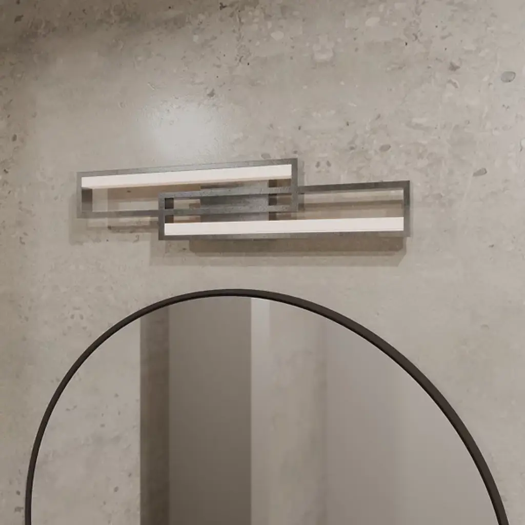 Introduce a bold geometric flair to your bathroom with the Kocha LED Vanity Light from Quoizel. Its versatile integrated LED light source radiates beautifully through an open, rectangular framework, while the CCT switch on the fixture can be adjusted at any time, even after installation, for customizable brightness. As a part of the sought-after Platinum by Quoizel collection, Kocha seamlessly complements vanity spaces with a blend of style and functionality.