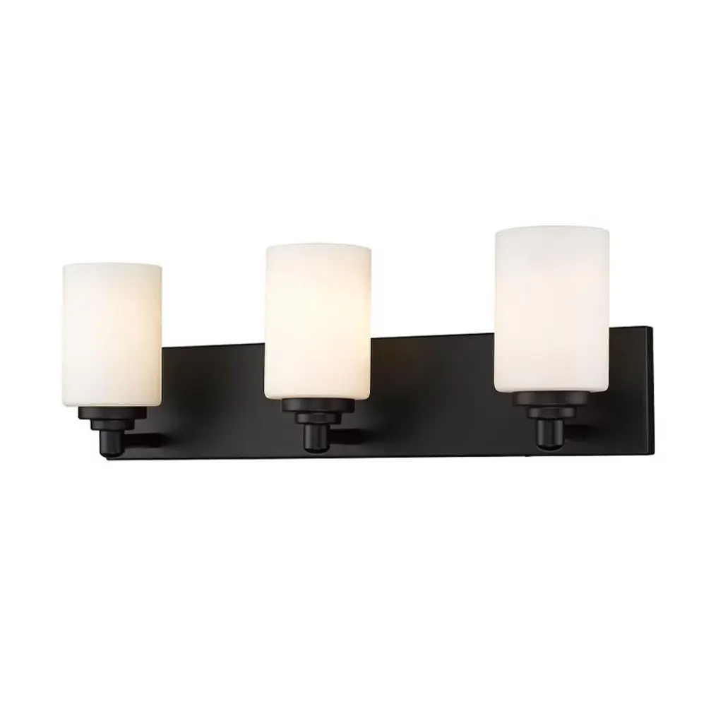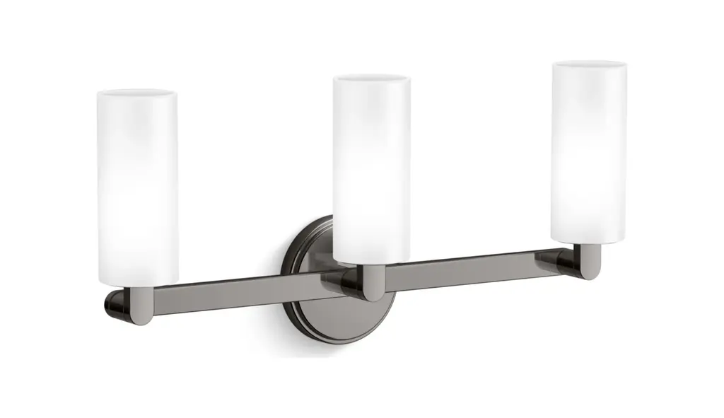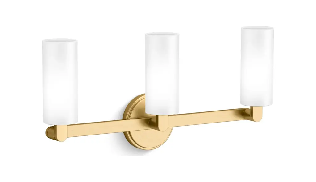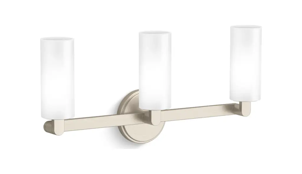The Crue lighting collection brings a model of clean, sophisticated design to your entire home. Minimalist sconces, pendants, and chandeliers provide a soft, inviting warmth and are available in an array of finishes. Crue lighting fixtures complement the Crue faucet collection for a cohesive home design. Features: Constructed from aluminum and steel Comes with frosted glass shades Requires (3) candelabra (E12) 60 watt bulbs (not included) Can be mounted to provide up or down lighting UL listed for damp locations ADA compliant Covered by Kohler Lighting's 1 year finish manufacturer warranty Dimensions: Height: 9-15/16" Width: 21-5/8" Extension: 3-7/8" Shade Width: 2-3/4" Backplate Width: 4-3/4" Electrical Specifications: Max Wattage: 180 watts Number of Bulbs: 3 Watts Per Bulb: 60 watts Bulb Base: Candelabra (E12) Voltage: 120 volts Bulbs Included: No