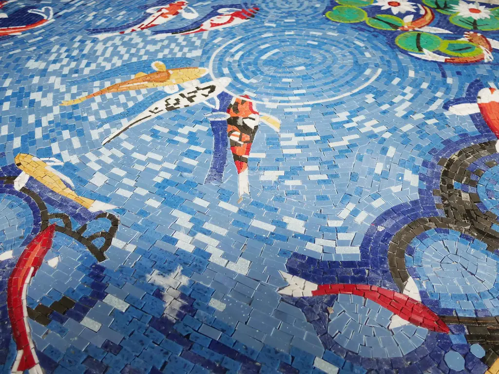 Introducing our enchanting "Koi Fish Swimming in the Pond - Mosaic Art," a stunning masterpiece that captures the serene beauty of nature through the timeless craft of mosaic artistry. This captivating artwork features a vibrant arrangement of multi-colored Koi fish gracefully swimming amidst a tranquil pond adorned with delicate water lilies. Each fish, with its unique patterns and vivid hues, brings life and dynamism to the scene, reflecting the harmony and peace found in nature. Handcrafted with care, this mosaic is created using 100% hand-cut natural stones, ensuring that every piece is not only a reflection of artistic skill but also carries a unique character. The meticulous attention to detail and the complexity of the design make this mosaic a truly exceptional piece, perfect for enhancing the ambience of any space. The mosaic showcases a dazzling palette of luxurious stones, including luminous Orange Quartz and radiant Dark Red Quartz that add warmth and depth with their crystalline brilliance. The shimmering Dark Blue Quartz and prismatic Prisma Blue Quartz evoke an oceanic brilliance and sapphire-like depth, while the translucent Aqua Blue Quartz and soft Light Red Quartz provide a cool, silky contrast that enhances the overall composition with scintillating jewel-like tones. Whether displayed indoors or outdoors, this premium quality mosaic art seamlessly blends into any environment. It is an ideal addition to your living room, bathroom, or pool area, where its vibrant colors and exotic materials inspire and uplift the atmosphere. The harmonious blend of Koi fish and lush water lilies serves as a beautiful reminder of tranquility and perseverance, making it a perfect gift for loved ones or a cherished addition to your own home. Transform your decorating style with this exquisite luxury stone mosaic that not only serves as an ornamental piece but also as a captivating conversation starter. Its unique handmade quality ensures you own a one-of-a-kind work of art embodying both natural beauty and remarkable craftsmanship. Bring the essence of serene waters and colorful Koi into your life with the "Koi Fish Swimming in the Pond - Mosaic Art," and celebrate the artistry of nature in every glance.