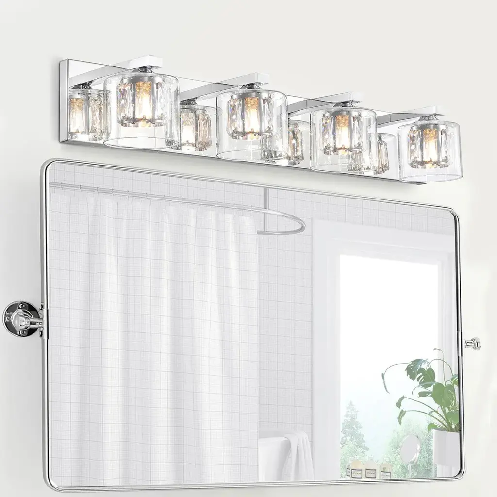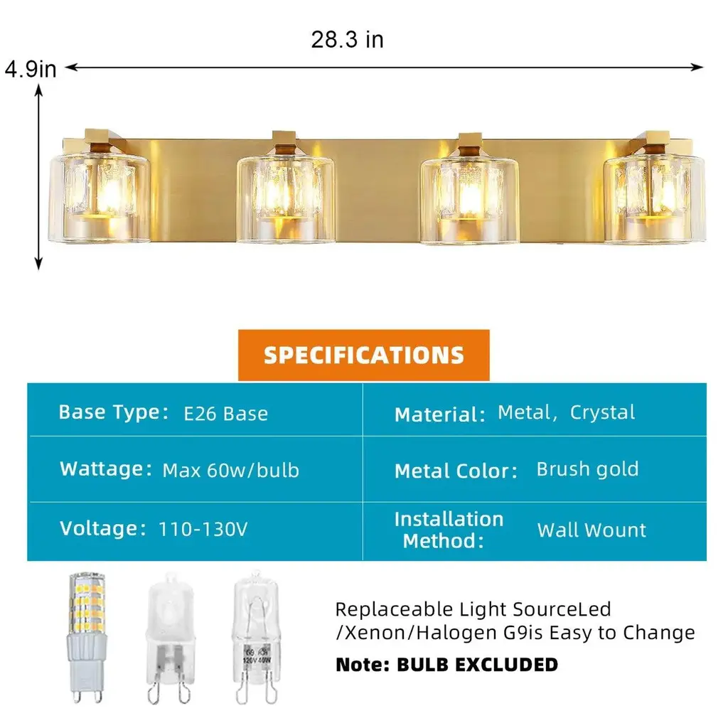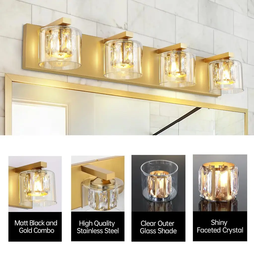 Transform your space into a romantic retreat with these durable metal and K9 crystal vanity lights, featuring dimmable E26 bulbs (60W max) for a warm, customizable glow.【Dazzling Elegance】 : Crafted with shimmering K9 crystal that catches the light, turning every glance into a moment of pure enchantment.【Timeless Durability】 : High-quality metal fuses with K9 crystal for a piece that’s as strong as it is stunning, resisting wear and oxidation with effortless grace.【Sleek Sophistication】 : The perfect blend of polished metal and radiant crystal creates a bold, luxurious vibe that commands attention.【Unbreakable Allure】 : Sturdy construction ensures this beauty isn’t just for show—it’s built to last, keeping its sparkle through every season.【Damp-Rated】 : This modern vanity lamp has been damp-rated for moisture, which means it can be used safely in damp environments such as bathrooms without being damaged.
