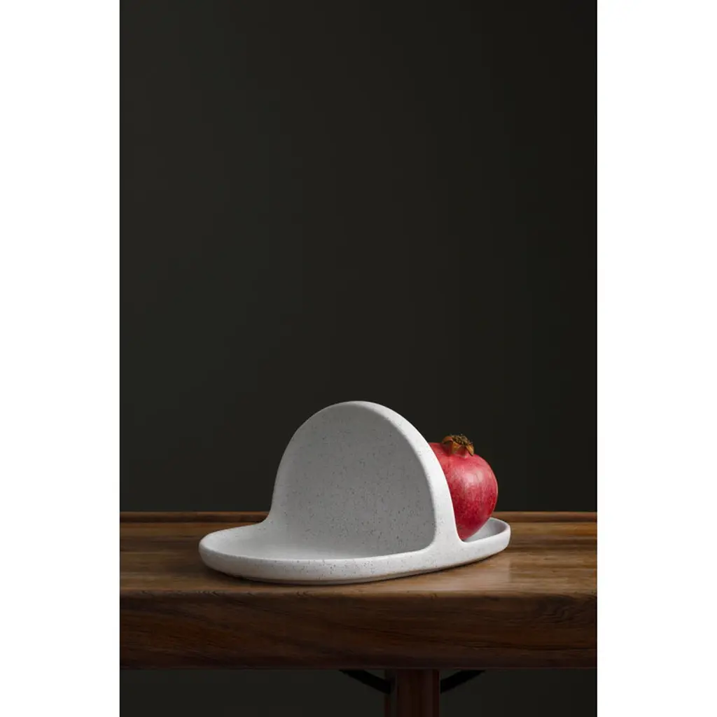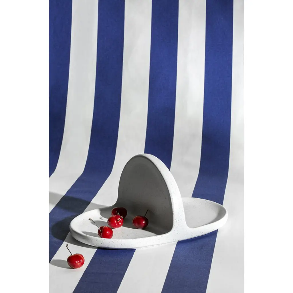 Nedre Foss’ Korg tray, created by Italian designers Paolo Lucidi and Luca Pevere, is a small ceramic tray that is equally suitable for serving food and storing small items. The wall in the middle of the tray functions as a handle, dividing the tray into two compartments. Lucidi and Pevere aimed at designing a versatile tray with a distinctive handle, and after numerous sketches, the designers came up with a form that draws from the shape of baskets rather than typical flat trays. You can use the Korg tray to serve spices and dips as well as sweet or savory snacks, or use it as a storage tray for office supplies, bathroom items and candles.