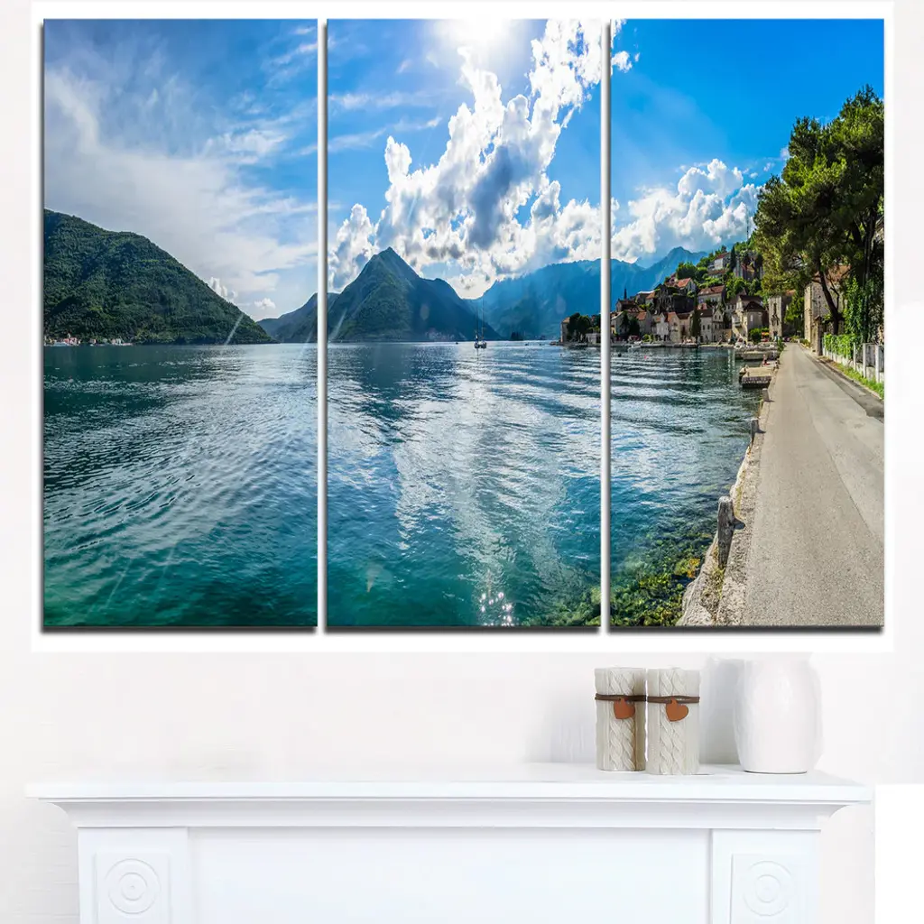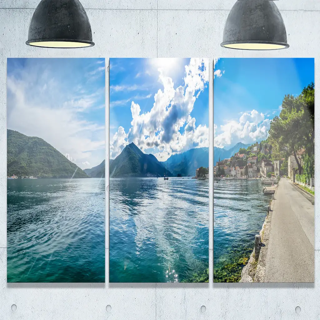"Kotor Bay On Summer Day Panorama" Metal Wall Art, 3 Panels, 36"x28"