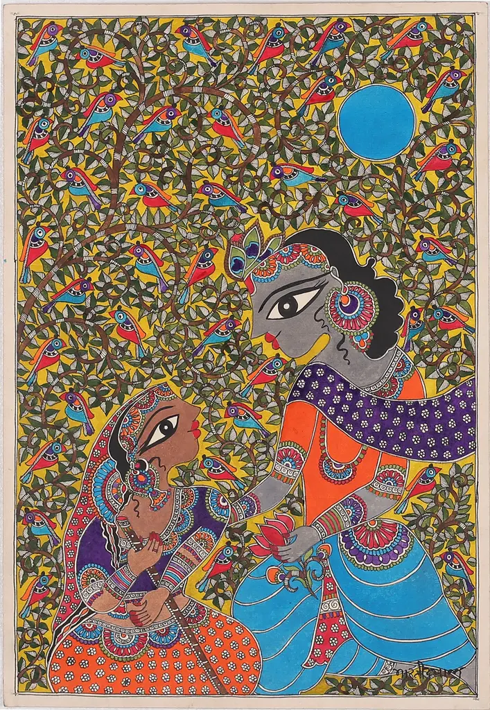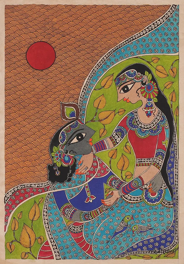 Krishna Madhubani Painting On Handmade Paper From India- Sublime Krishna