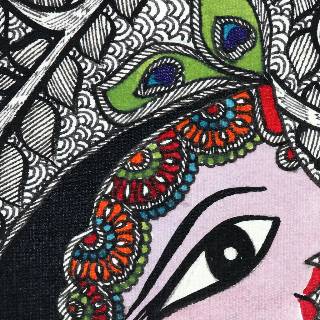 Krishna-Themed Madhubani Painting On Handmade Paper- Benevolent Krishna