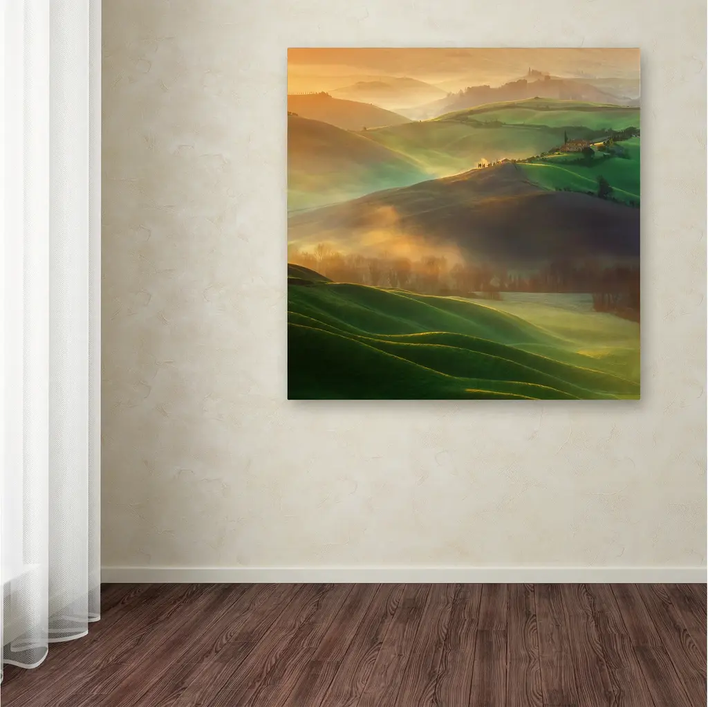 Artist: Krzysztof BrowkoSubject: LandscapeStyle: Mid-Century ModernProduct Type: Gallery-Wrapped Canvas ArtMade in USAThis ready to hang, gallery-wrapped art piece features a hill covered landscape with light shining down from above.1x is not your average photo site. All photos on 1x are selected by a team of professional gallery curators, just like in a real photo gallery. Our curators have experience from well-known institutions such as Sotheby's and Tate Modern Art. We believe that everyone has an inner photographer, just waiting to be discovered. Getting published on 1x is a great achievement; many photographers whose works now hang in art galleries were once discovered on 1x. It's no coincidence that art directors, book editors, and magazines all over the world use photos from 1x photographers.Giclee (jee-clay) is an advanced printmaking process for creating high quality fine art reproductions. The attainable excellence that Giclee printmaking affords makes the reproduction virtually indistinguishable from the original piece. The result is wide acceptance of Giclee by galleries, museums, and private collectors. Gallery wrap is a method of stretching an artist's canvas so that the canvas wraps around the sides and is secured a hidden, wooden frame. This method of stretching and preparing a canvas allows for a frameless presentation of the finished painting.