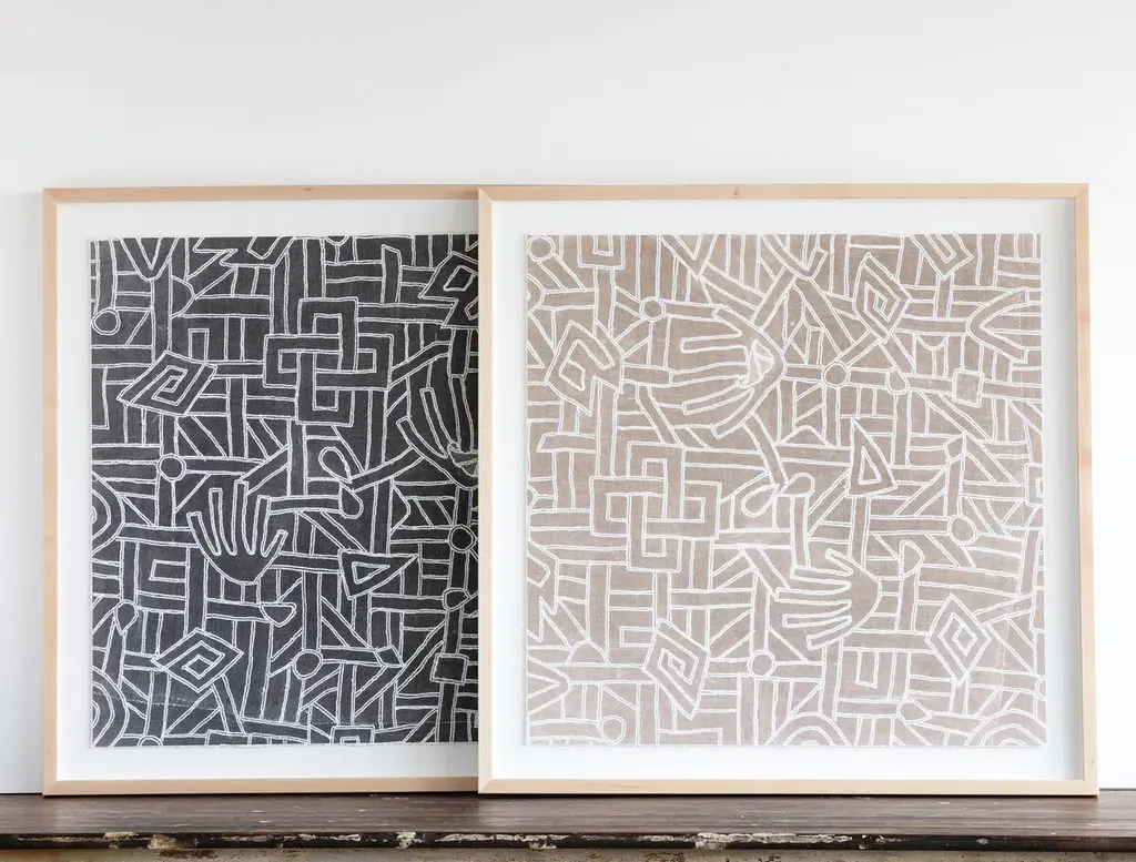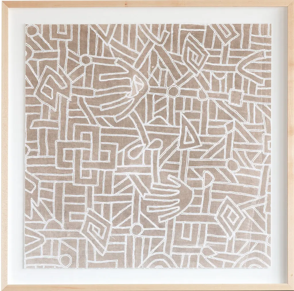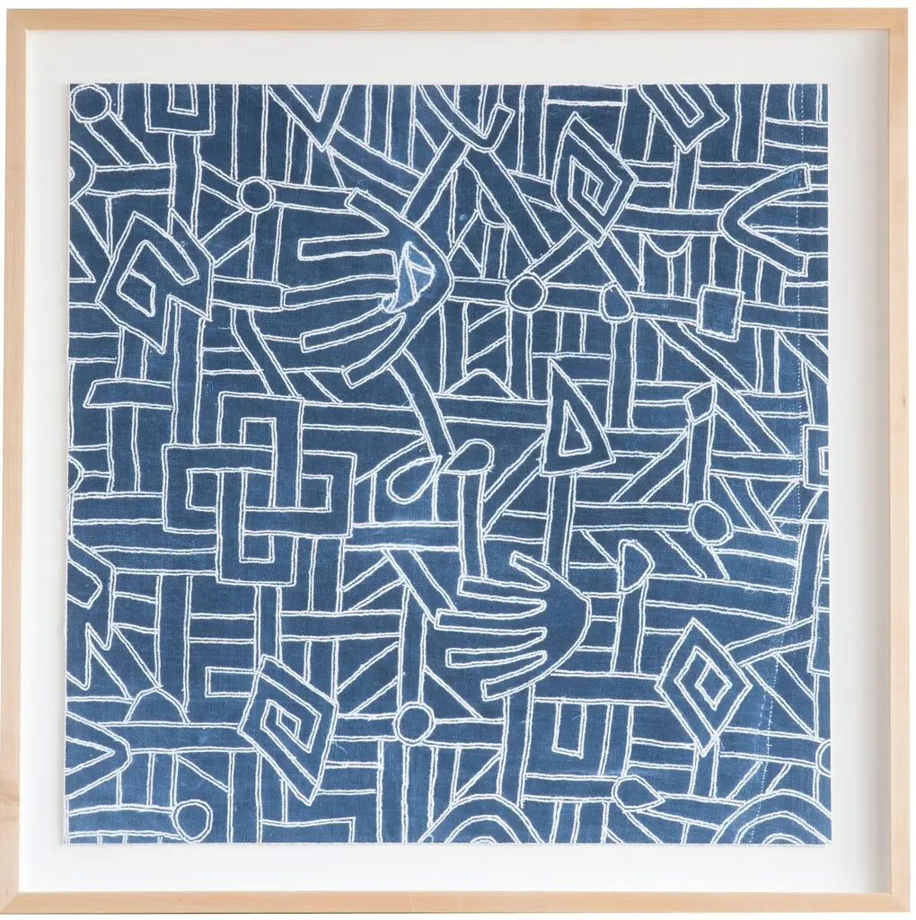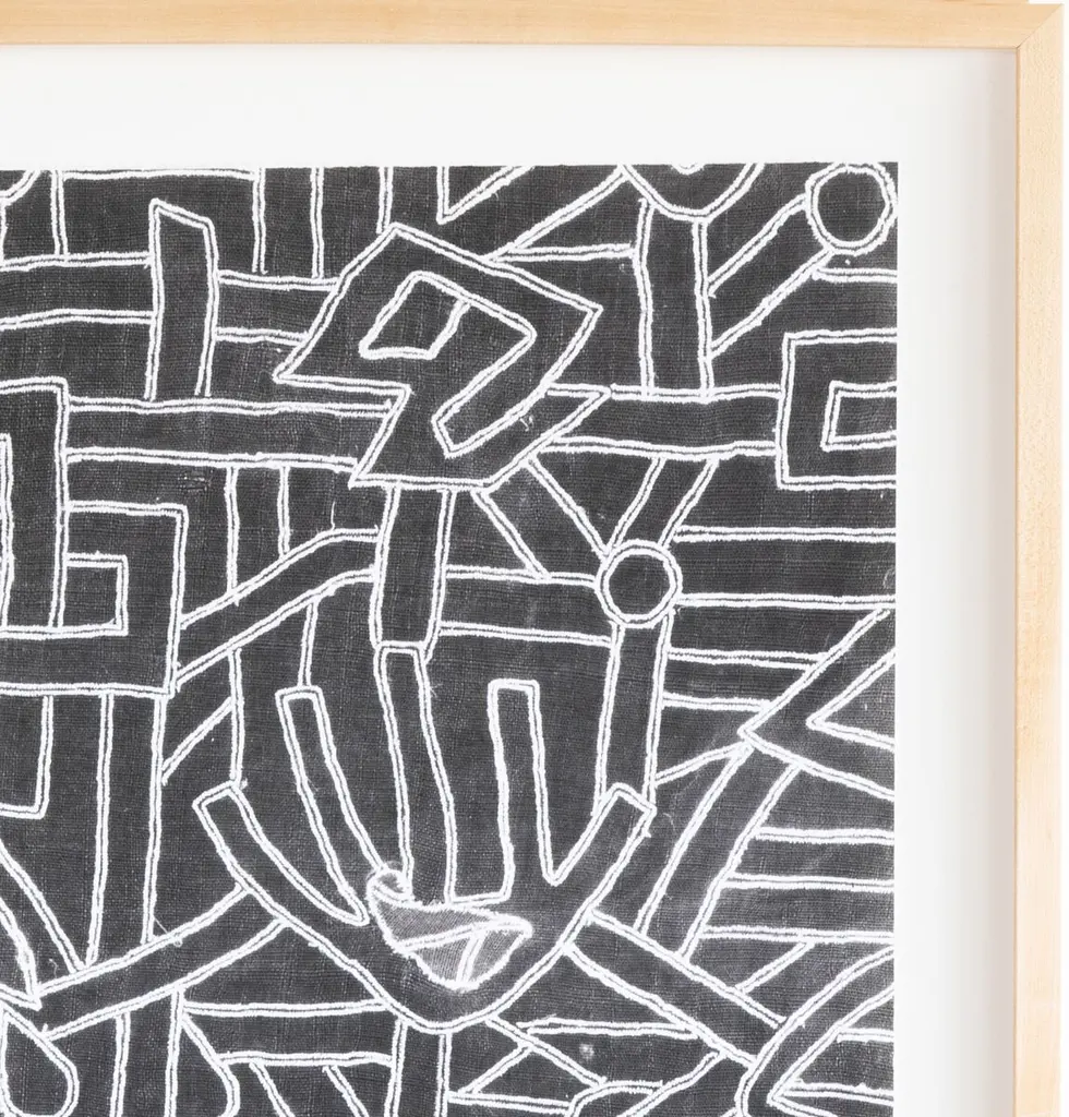 Dawn Wolfe collects vintage textiles from around the world. This depiction of a Kuba cloth pattern was reproduced on heavy cotton rag paper and arrives framed and ready to hang.