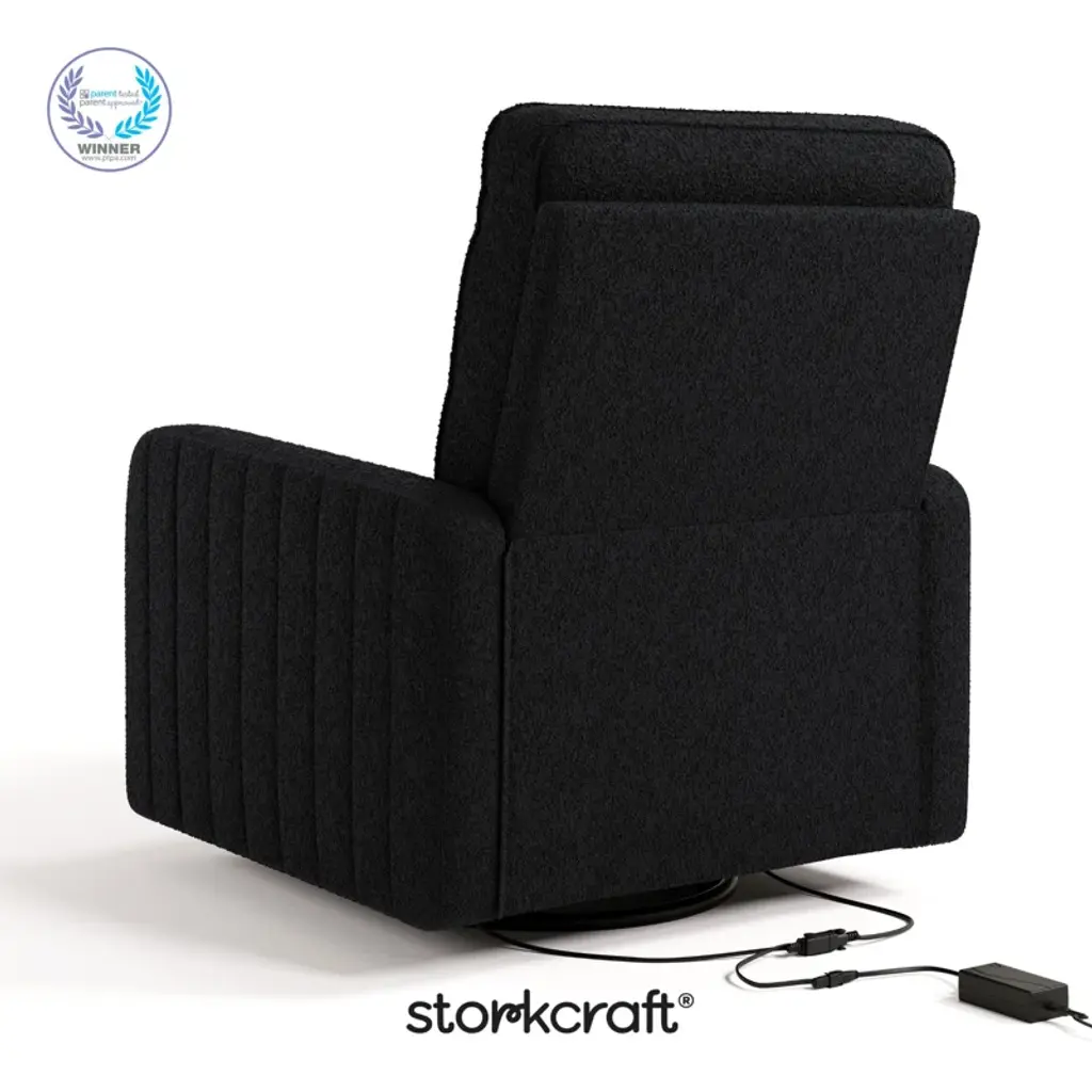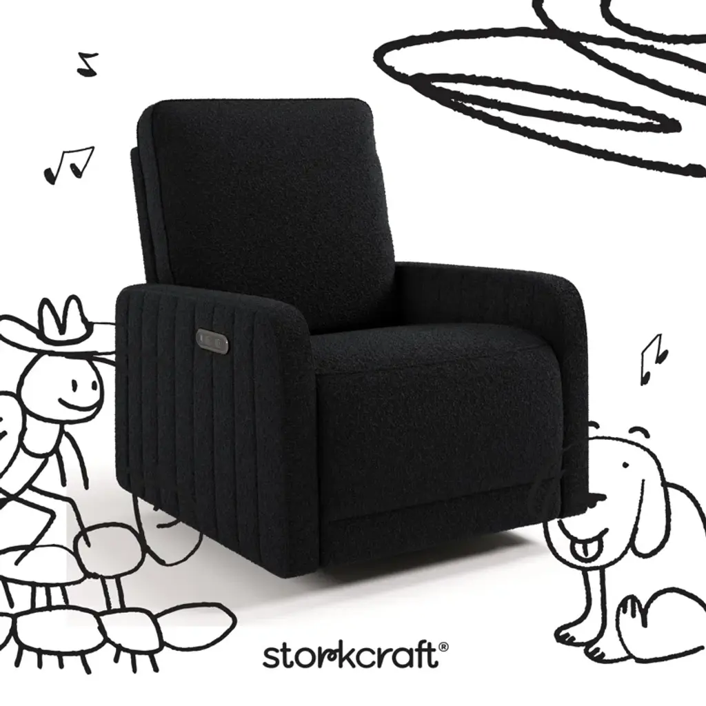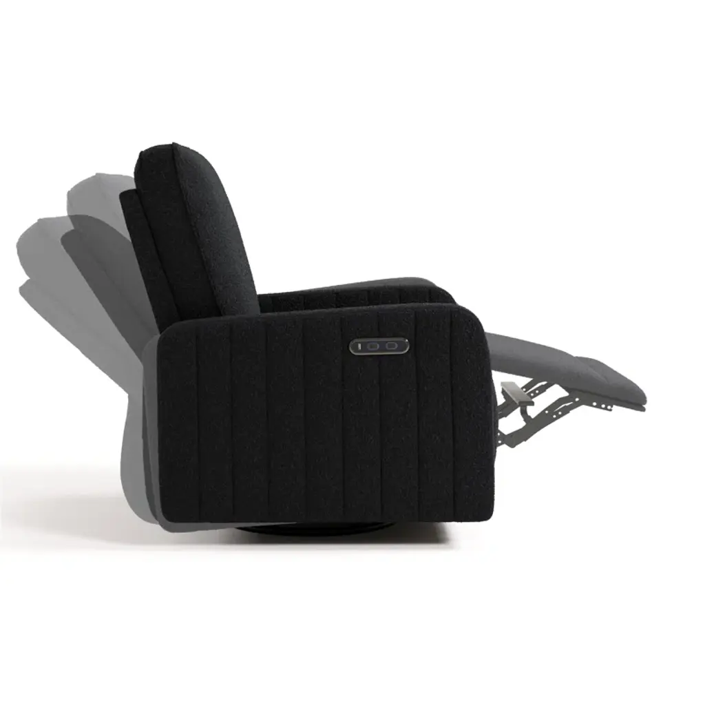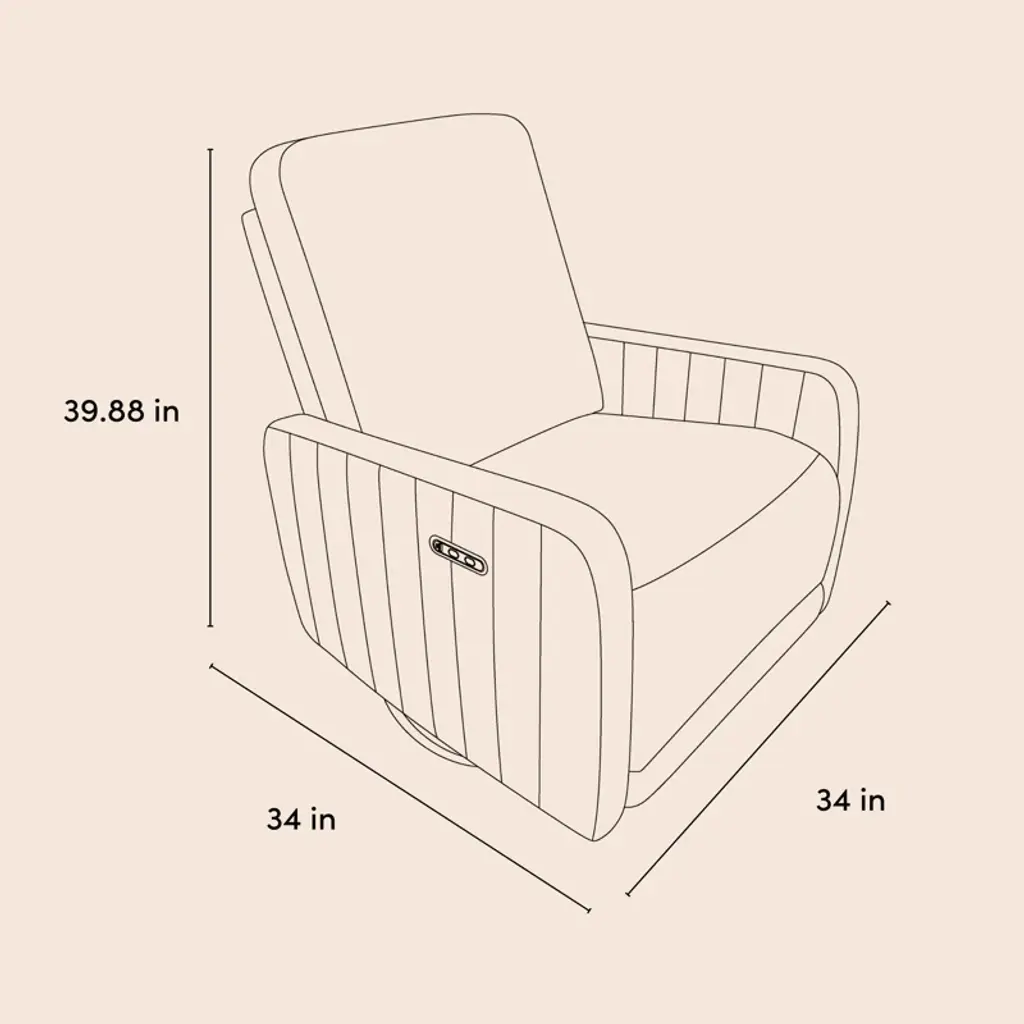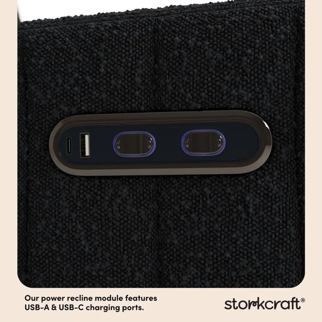 Introducing the elegant and innovative Storkcraft Kyoto Deluxe Extra-Wide Nursery Power Recliner Swivel Glider — part of Storkcraft’s exclusive, ultra-premium “Art of Nursery” Collection. The Kyoto Deluxe Extra-Wide Nursery Power Recliner Swivel Glider embodies the signature elevated designer details of Storkcraft’s premium Kyoto Collection, but in the form of a comfortable, relaxing nursery glider rocking chair — specifically designed for bonding moments with your newborn. The Kyoto’s gorgeous aesthetic is distinctly defined by its vertical channel tufting — adding a dose of designer elegance to your nursery. More than just a nursery glider, the innovative Kyoto includes “push button” electronic power reclining, allowing you to lean back (and sit back up) with the easy push of a button. An extension of the Storkcraft Kyoto Collection, the Kyoto Deluxe Nursery Power Recliner Swivel Glider also includes a dual-USB charging port – equipped with both a USB-A and USB-C charging port to keep your smartphone, tablet, or e-reader charged, so you can focus on your baby. The Kyoto is part of the Art of Nursery line of products — hand-sketched, elevated nursery and kids' bedroom pieces designed with love and inspired by the beauty and landscapes around us. Quality-crafted with premium materials and appointed with luxurious details, Art of Nursery is an exclusive Storkcraft collection, designed in-house, that personifies elegance, imagination, and craftsmanship. These grow-with-me pieces are brought to life — with love — by real parents for real families, and are smartly engineered to adapt to your growing baby throughout childhood’s ever-changing stages. An original Storkcraft design, the Kyoto is exclusively manufactured by Storkcraft — North America’s longest-standing name in cribs, since 1945. The Kyoto is backed by Storkcraft’s one-year limited manufacturer’s warranty and supportive, real-life Customer Care team. Easy Assembly required. Power source (wall outlet) required. An exclusive, in-house, Storkcraft original design — and part of Storkcraft's flagship Art of Nursery Collection. For a standard-sized experience, discover the Storkcraft Kyoto Deluxe Nursery Power Recliner Swivel Glider. Crafted with love, since 1945.