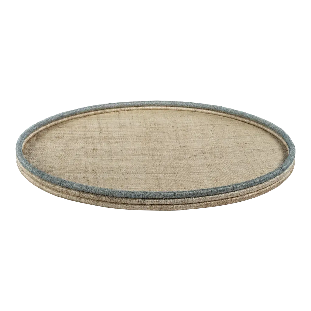 The Medium La Côte Coiled Rattan & Abaca Rectangular Serving Tray is a stylish and functional piece that blends natural textures with a pop of color. Product Highlights: Materials: Crafted from coiled rattan and abaca, giving it a tropical, organic feel. Design: Features a natural finish with a vibrant Côte d'Azur blue rim for a coastal-inspired accent. Size: Medium dimensions—approximately 18.25" x 8.75". Functionality: Ideal for serving drinks, snacks, or displaying decorative items. Sturdy enough for heavier items like cheese boards. Craftsmanship: Handmade using traditional coil-style weaving, making each tray unique. Antique, vintage, designer floor samples & new products from one of the hottest Retail and To The Trade Home Furnishings showrooms in the country. Located in Chicago's chic Roscoe Village, Kenneth Ludwig Chicago carries the best offerings in furniture, accessories, artwork & textiles. Offerings are always fresh & always inspiring! Quite often ( due to a discontinued style, fabric or frame ) they must sell off their showroom floor samples. You receive first quality pieces at amazing prices. Check back weekly for new inventory added.