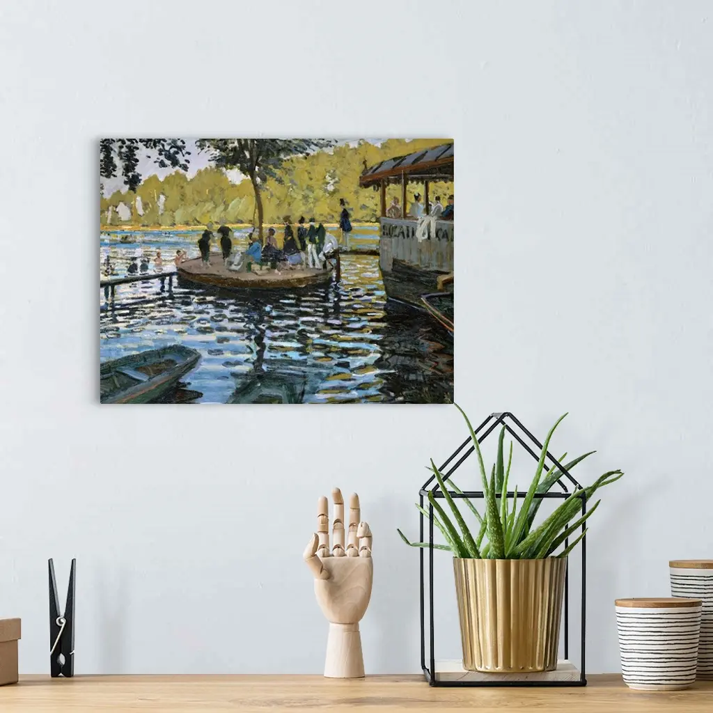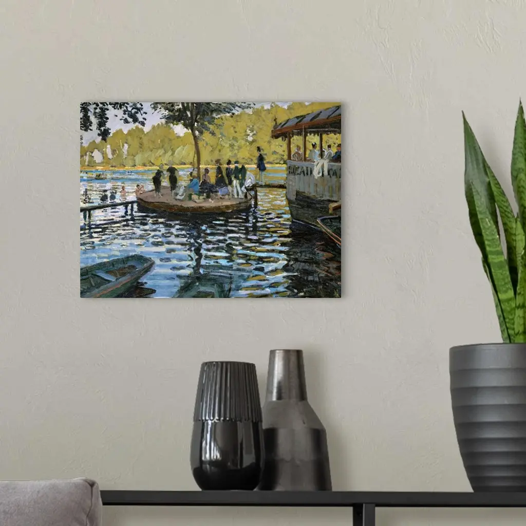 During the summer of 1869, Monet and Renoir set up their easels at La Grenouillere, a boating and bathing resort on the Seine, not far from Paris. Monet noted on September 25, I do have a dream, a painting, the baths of La Grenouillere, for which I have made some bad sketches, but it is only a dream. Renoir, who has just spent two months here, also wants to do this painting. Of their various depictions of the subject, this composition closely resembles one by Renoir in the Nationalmuseum, Stockholm.