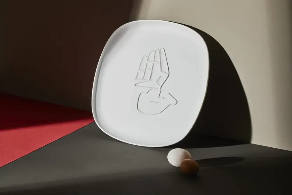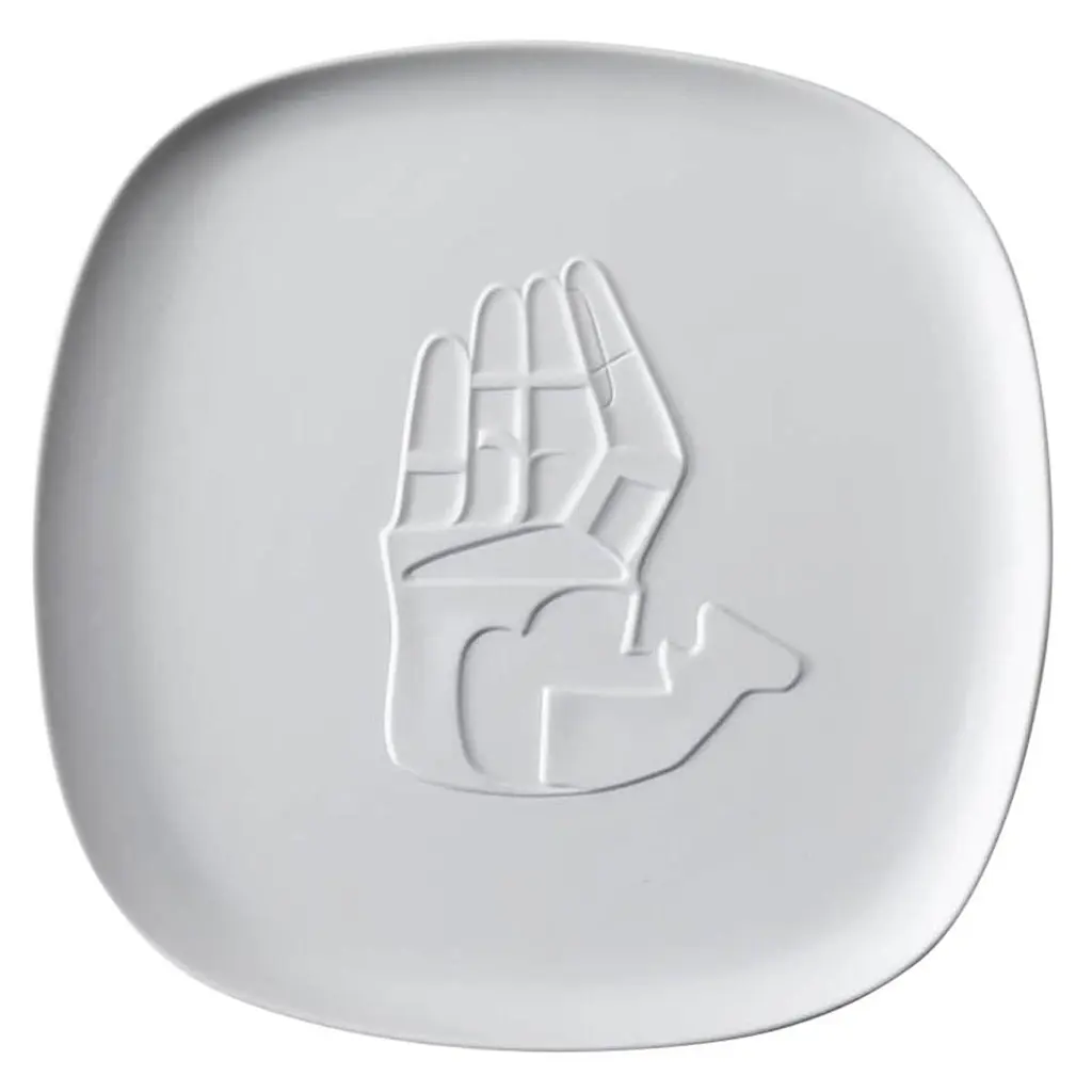 Cassina takes its inspiration from the genius of Le Corbusier for a collection of three trays in pure, unglazed porcelain. These trays borrow some of the bas-relief symbols chosen for the walls of the buildings of Chandigarh, the city designed in the 1950s and now a UNESCO World Heritage Site. The same procedure can be seen in Marseille in the Unité d’Habitation on the sculptures moulées, symbolic designs embedded by Le Corbusier in the concrete – béton brut – taken from his figurative portfolio. Each tray, made by Ginori 1735, includes a design sketched by the Master in 1956: the open hand symbolising peace (square tray with rounded corners), the fish (round tray), the movement of the sun (rectangular tray). Cassina in collaboration with Ginori 1735 and the Le Corbusier Foundation