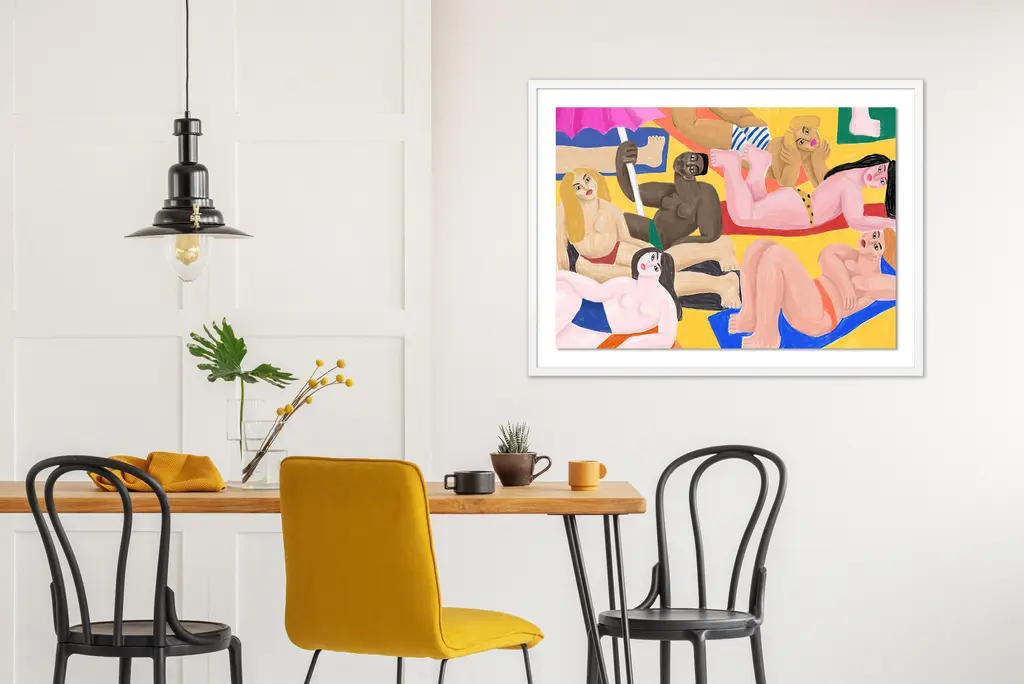La Plage by Cedric Pierre-Bez, Art Print in White Frame, Medium Overall Size: 36x27 Frame Color: White