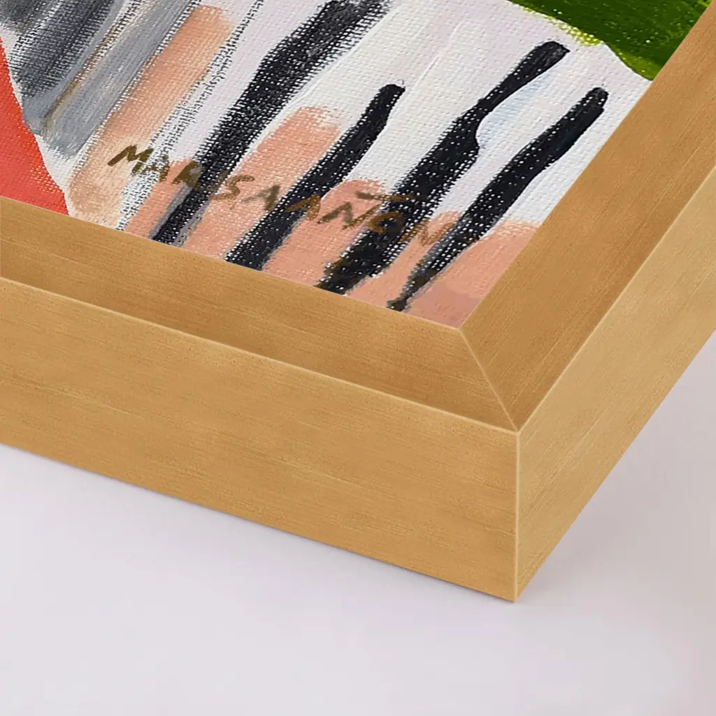 DESCRIPTION: La Riada by Marisa Anon in Gold Frame, XS Art Print SPECIFICATIONS: Type: Framed Paper. Framed Size (in): 16x12.5. Orientation: Horizontal. Flush/Float/Matted: Flush. Frame Color: Gold. Hanging Hardware: Picture Perfect. FRAMING: Each art work arrives framed and ready to hang. We use handmade frames with a plexiglass glazing front, because it offers less glare than standard glass. At this time, we only offer framed prints. ARTIST BIO: Marisa Anon is inspired by light, nature, the colours and reflections of the sea and the delicious light of the sunny Mediterranean coast, her home and birthplace. She likes to bring that outdoor light inside her studio, to experiment with the colors and shapes, the shadows and the light. Marisa trained as a Fine Art Conservator and holds a Bachelor of Arts Degree. Her extensive and intimate experience working with classical painting served to heighten her sensitivity to aesthetics, sense of pictorial lushness and harmony of color. Marisa is passionate about her paintings and spends every day in her studio, doing what she loves. A keen and experienced traveler herself, she is delighted that her paintings are collected by art lovers all over the world.
