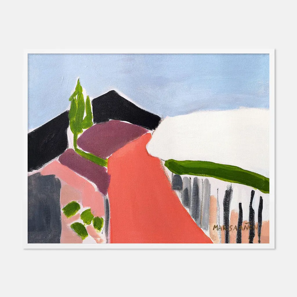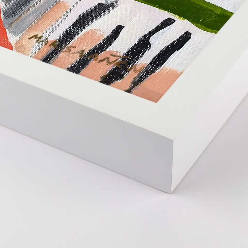 DESCRIPTION: La Riada by Marisa Anon in White Frame, Small Art Print SPECIFICATIONS: Type: Framed Paper. Framed Size (in): 24x19. Orientation: Horizontal. Flush/Float/Matted: Flush. Frame Color: White. Hanging Hardware: Picture Perfect. FRAMING: Each art work arrives framed and ready to hang. We use handmade frames with a plexiglass glazing front, because it offers less glare than standard glass. At this time, we only offer framed prints. ARTIST BIO: Marisa Anon is inspired by light, nature, the colours and reflections of the sea and the delicious light of the sunny Mediterranean coast, her home and birthplace. She likes to bring that outdoor light inside her studio, to experiment with the colors and shapes, the shadows and the light. Marisa trained as a Fine Art Conservator and holds a Bachelor of Arts Degree. Her extensive and intimate experience working with classical painting served to heighten her sensitivity to aesthetics, sense of pictorial lushness and harmony of color. Marisa is passionate about her paintings and spends every day in her studio, doing what she loves. A keen and experienced traveler herself, she is delighted that her paintings are collected by art lovers all over the world.