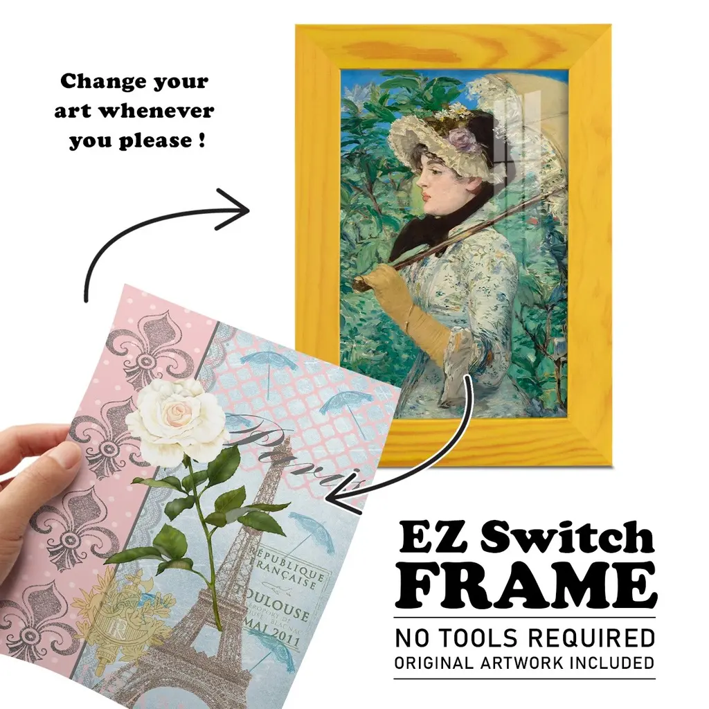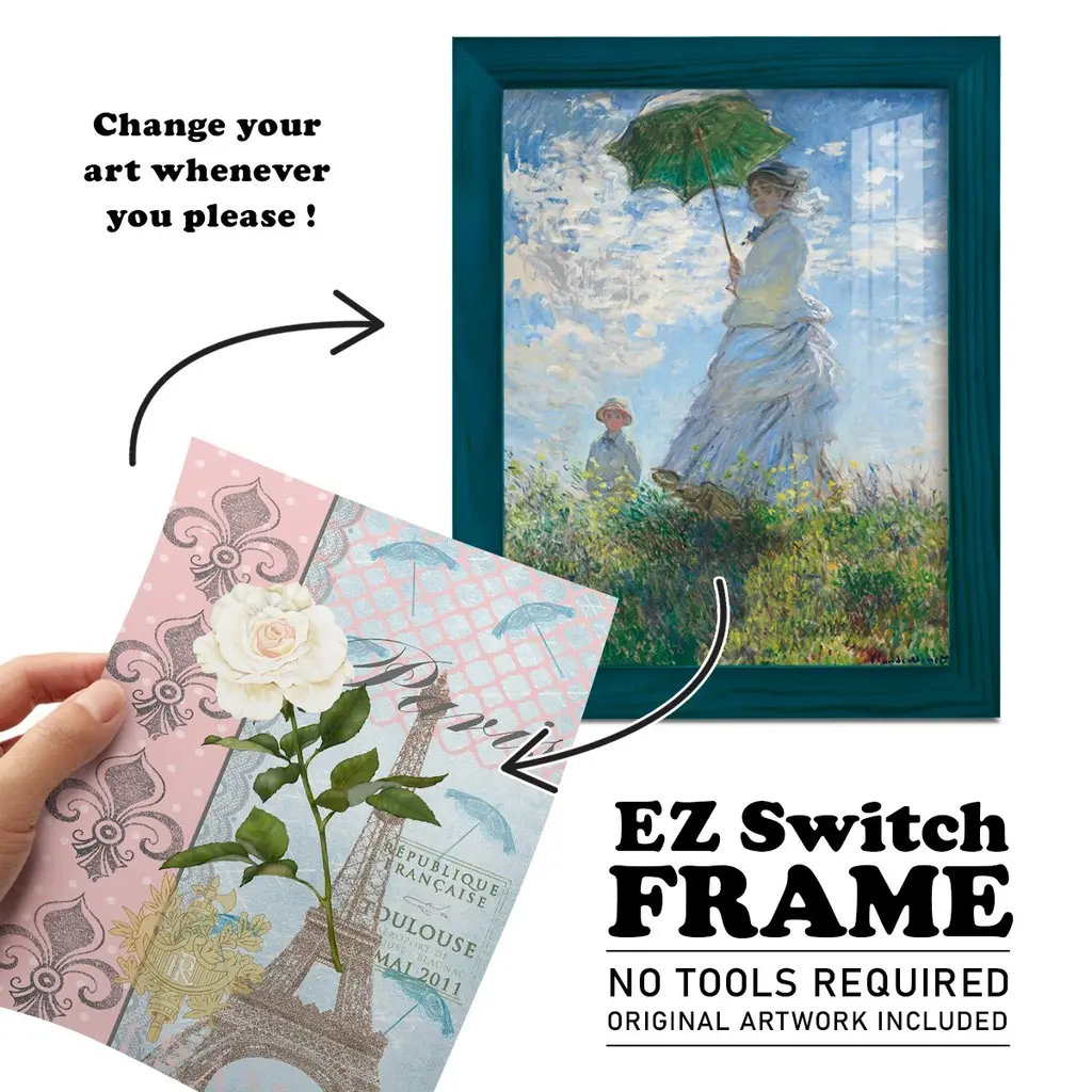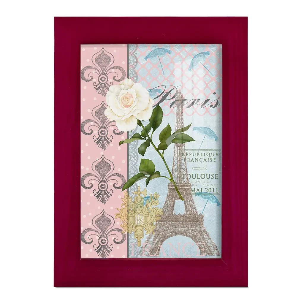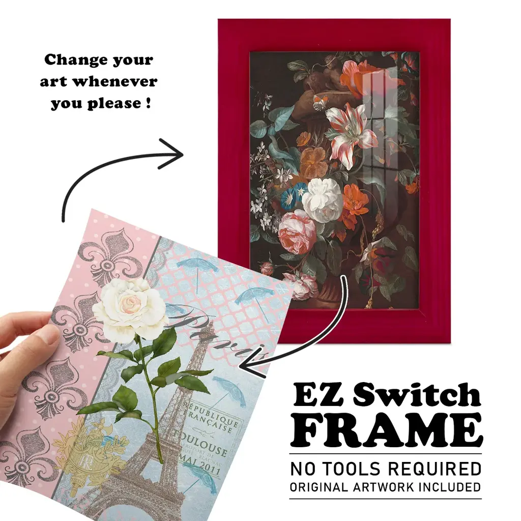 La Vie en Rose II -EZ SWITCH Framed Print w/glass-Cherry Red A delightful, framed print. Featuring a solid wood frame with real wood glass. This premium print is giclee quality. In addition, every frame features a removable back and table top stand. This allows you to change your art in the future or to just stand the art on a table for a new look. We are sure you'll enjoy our new series of EZ SWITCH Framed Art. Solid Wood Frame Real Glass Removable / Replaceable Art Built in Tabletop Stand Sizes range from 4x6 up to 12x15 - buy just one or pair them up as sets as you see fit.