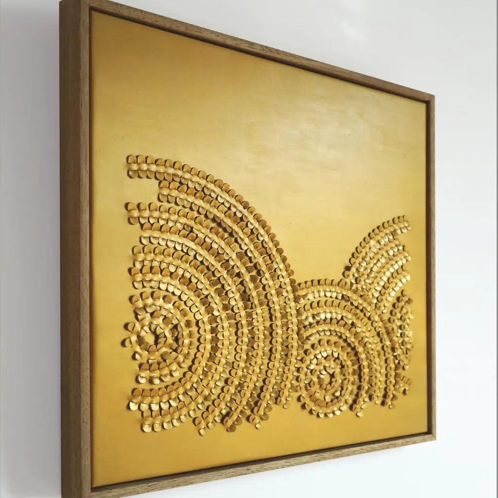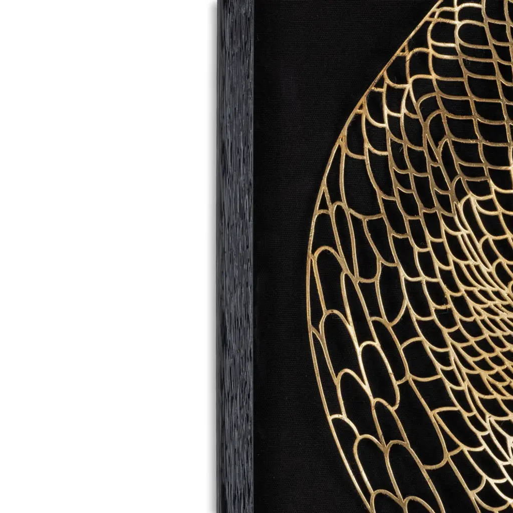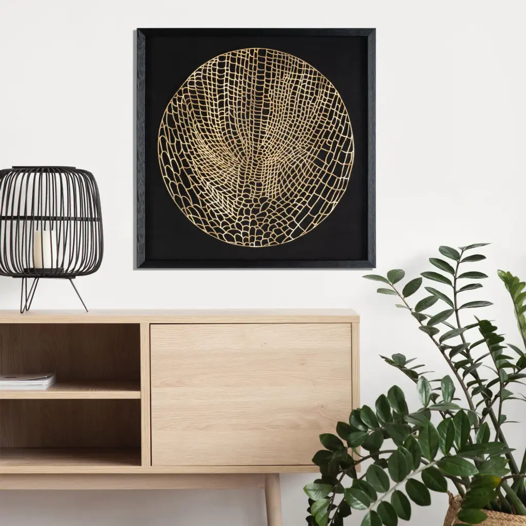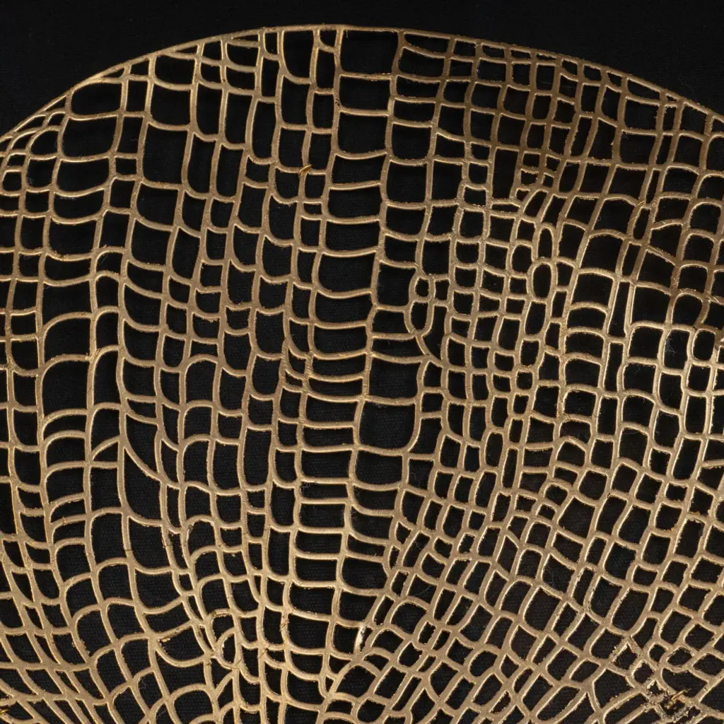 Introducing a captivating 40" by 60" masterpiece, meticulously hand-painted to perfection. This textured abstract composition boasts a harmonious interplay of rich, warm brown and deep, enigmatic black color blocks, expertly balanced with subtle yet striking accents of opulent gold foil and dark, moody blue tones. Encased in an elegant silver polycomposite frame, this artwork exudes a timeless sophistication that effortlessly complements any space. With convenient hooks affixed to the back, it offers versatile display options, allowing you to hang it vertically or horizontally, bringing a touch of refined artistry to your environment.Every inch of this 40" by 60" canvas is meticulously painted by skilled hands, resulting in a truly unique and one-of-a-kind piece of art Rich, warm brown tones intermingle seamlessly with deep, enigmatic black, creating a visual symphony that is both powerful and invitingAdorned with a sleek silver polycomposite floater frame for a touch of modern sophisticationEasy to Hang, With hangers mounted to the back of the frame, you can hang this quickly and easily both vertically and horizontally