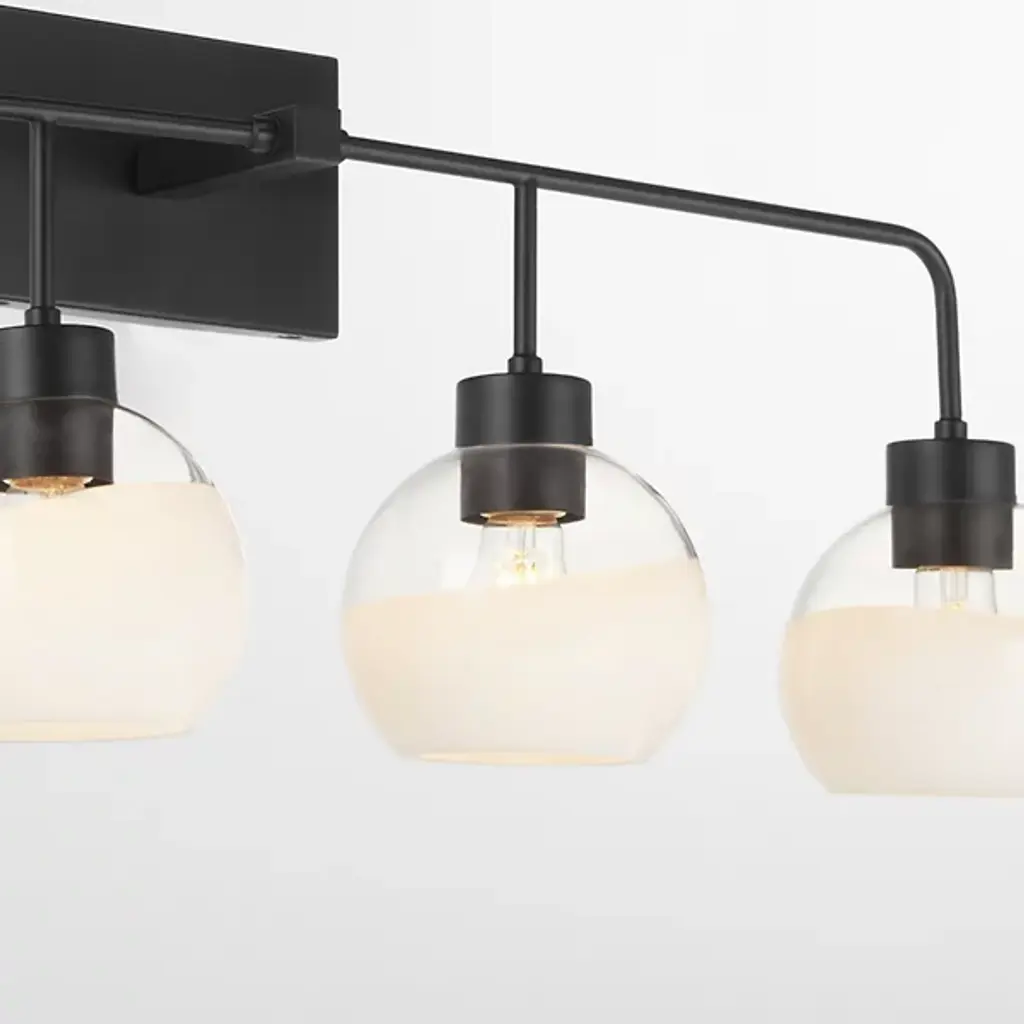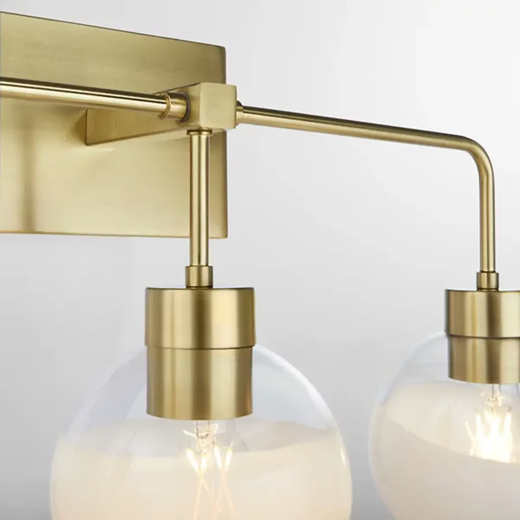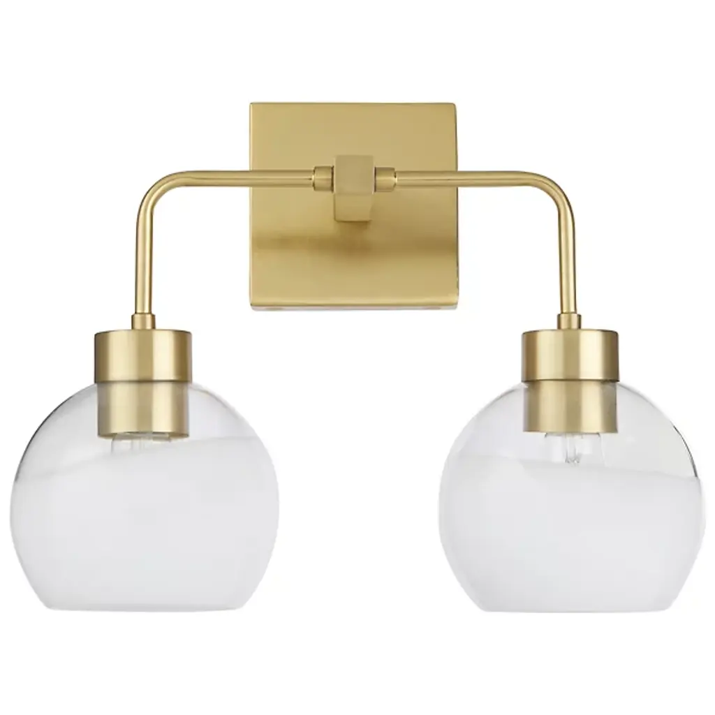 Simple and refined, the Lacy Vanity Light from Quorum International provides a welcoming layer of light to your home that works well in bathroom spaces or under covered patios. A simple square backplate extends a brief arm that mounts two thin, gracefully curving lines that lead to bowl-shaped clear glass shades. The glass contains a seeded texture on the surface and a single downward-facing bulb within. The light plays with the texture on the glass to create a unique, pleasing ambiance.